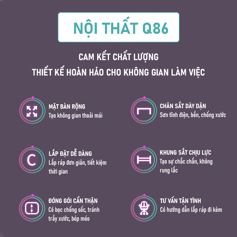 - Chân sắt hộp 2*4 cm dày 1mm chắc chắn + 2 thanh giằng đỡ mặt bàn bằng sắt hộp 2*2 cm