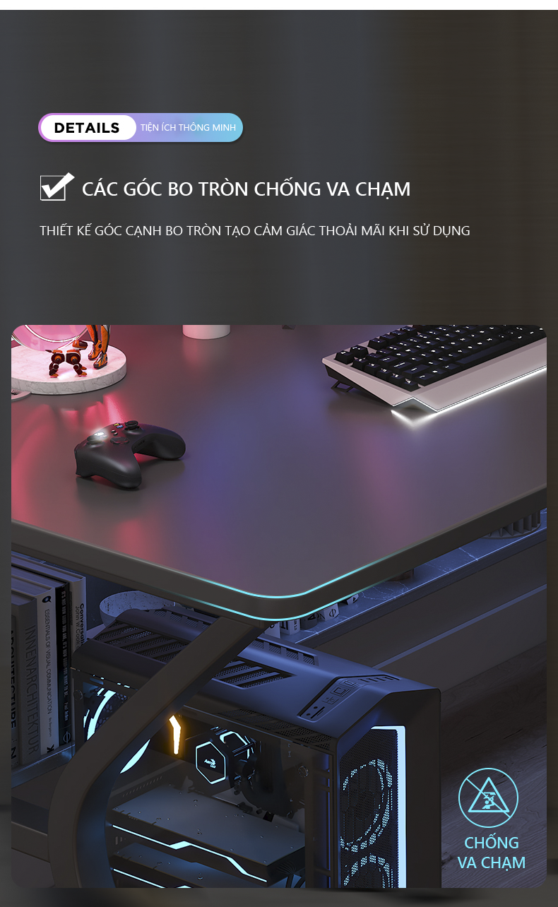 - Mặt bàn gaming cắt CNC uốn cong bo góc chống gù - như hình