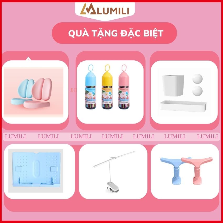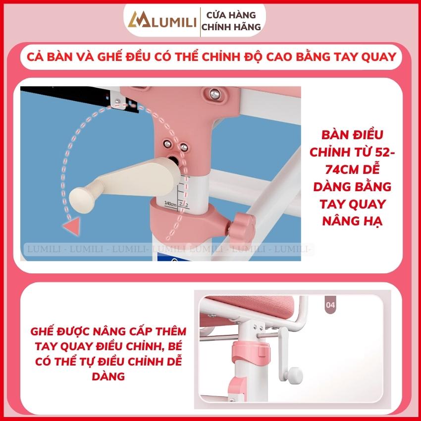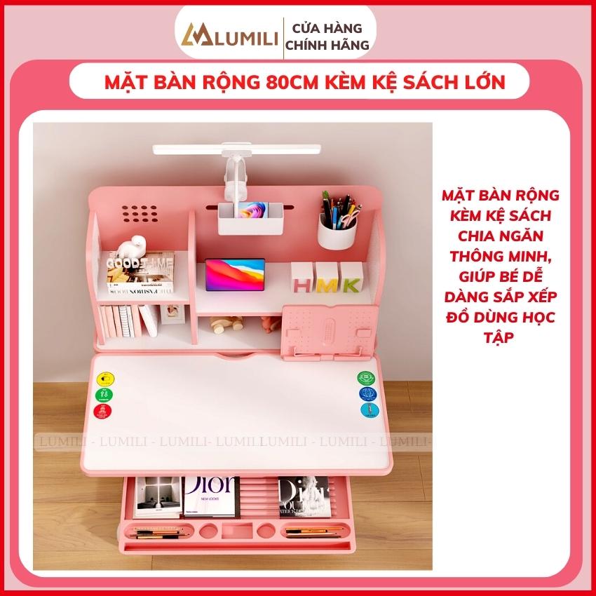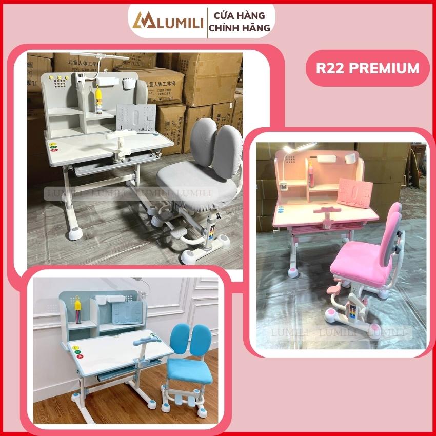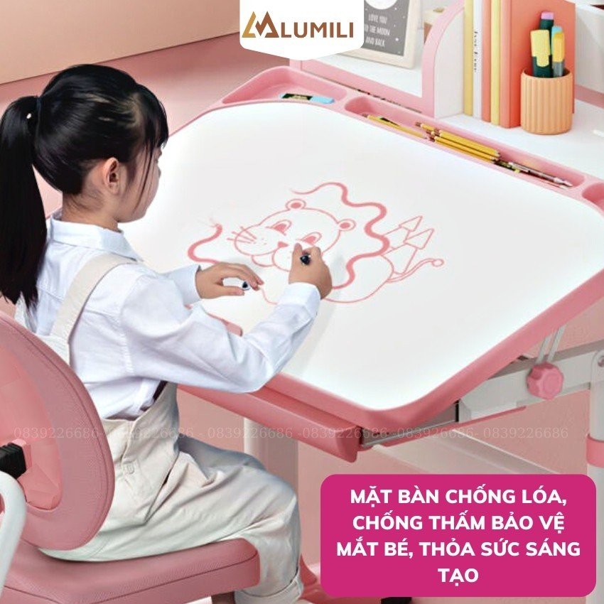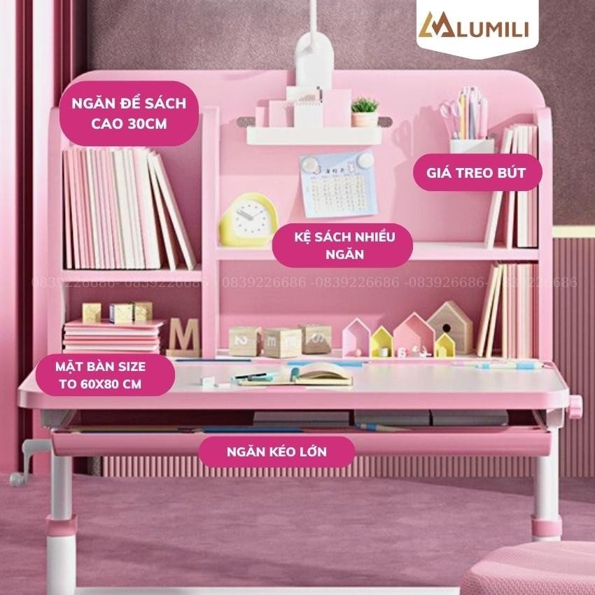 Bộ bàn học chống gù Lumili R22, bàn học cho bé có giá sách, bàn học sinh nâng hạ độ cao