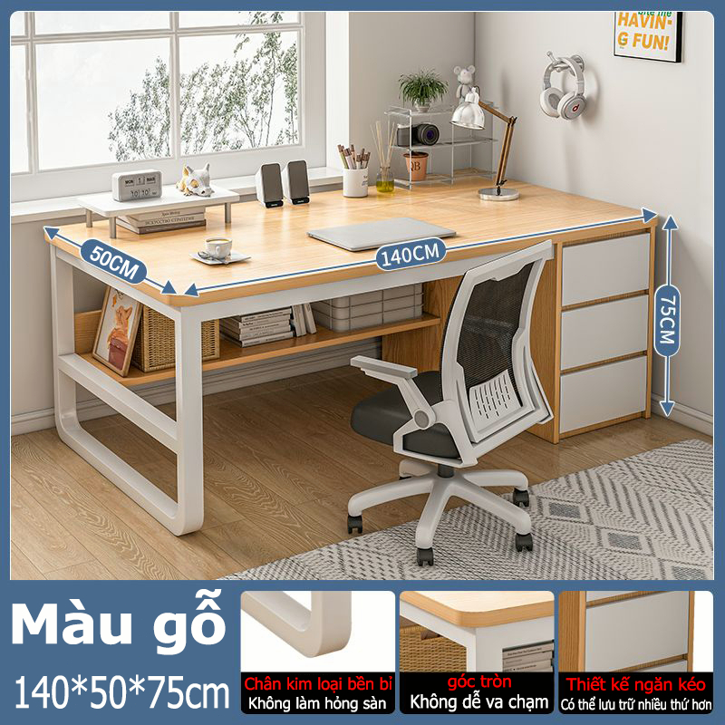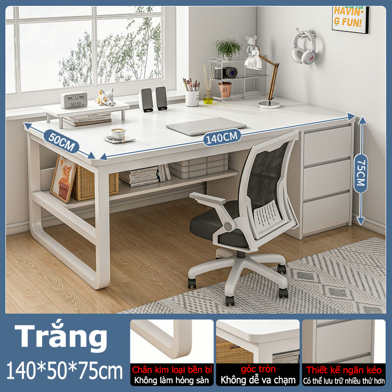 Bàn Làm Việc 3 hộc Hạn chế trầy xước Phong Cách Hiện Đại Nội Thất Tiết Kiệm mặt bàn kích thước lớn