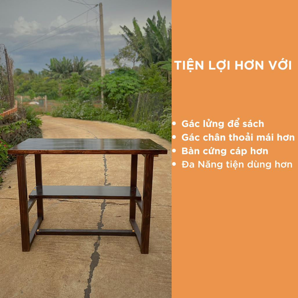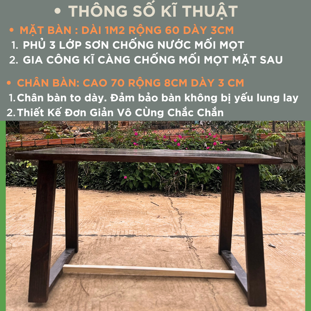 - Bàn được sử dụng 100% bằng gỗ thông nhập khẩu- ưu điểm vượt trội so với ván ép thông thường.