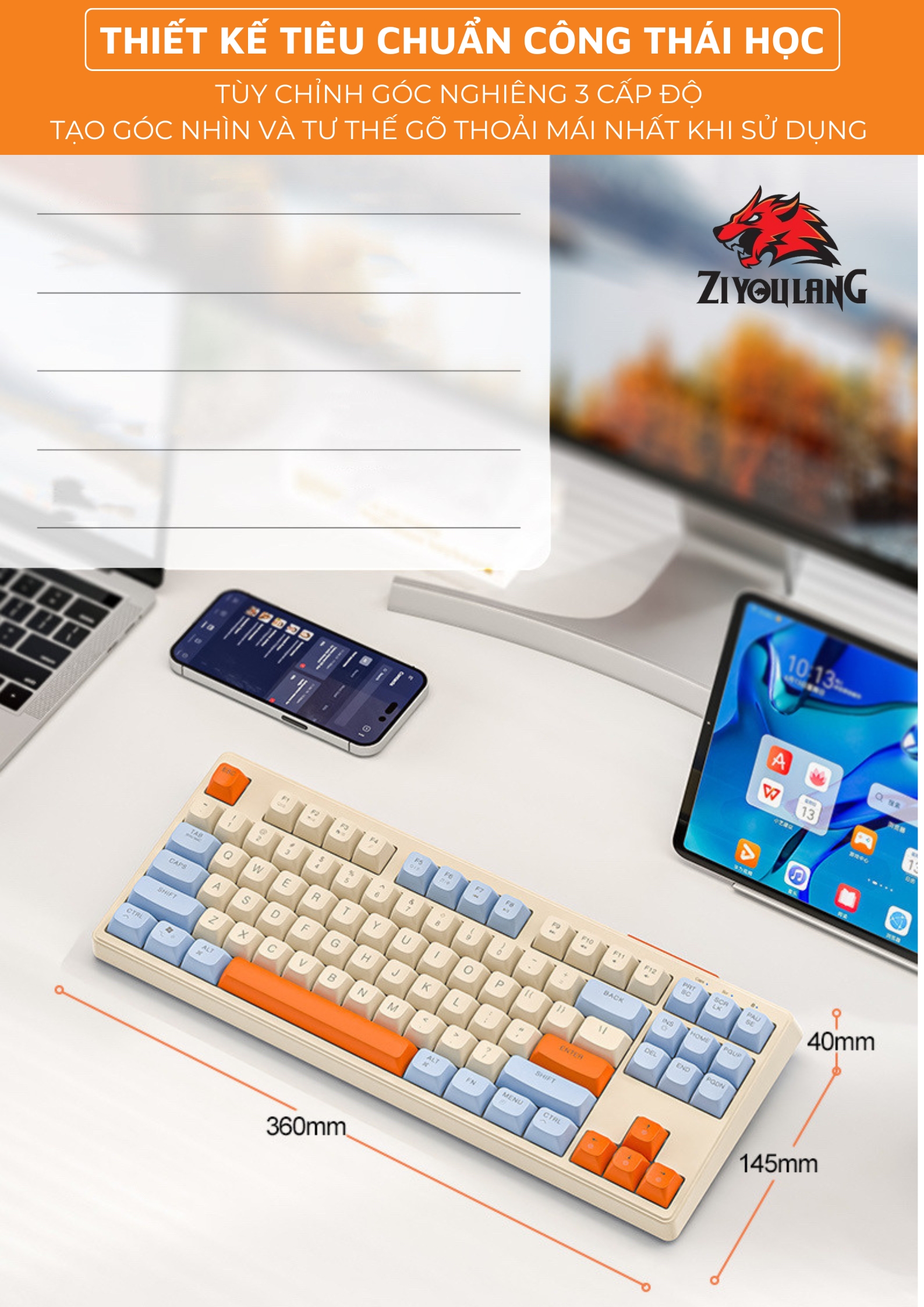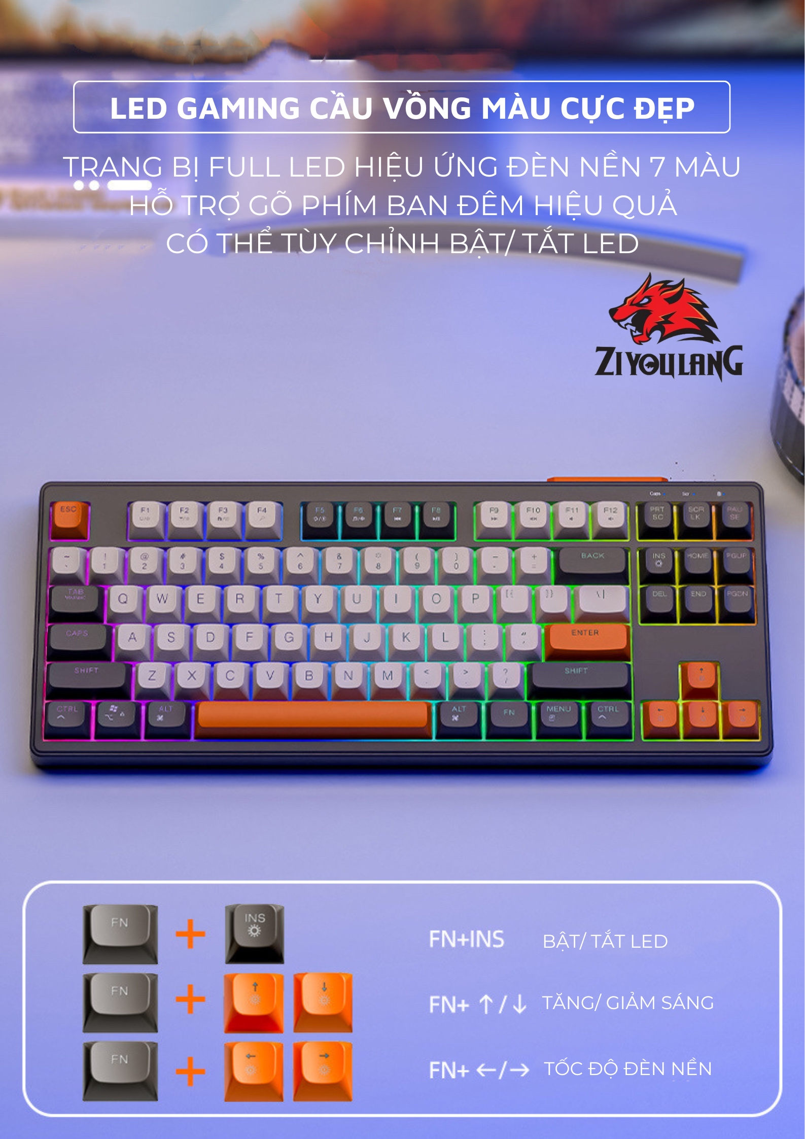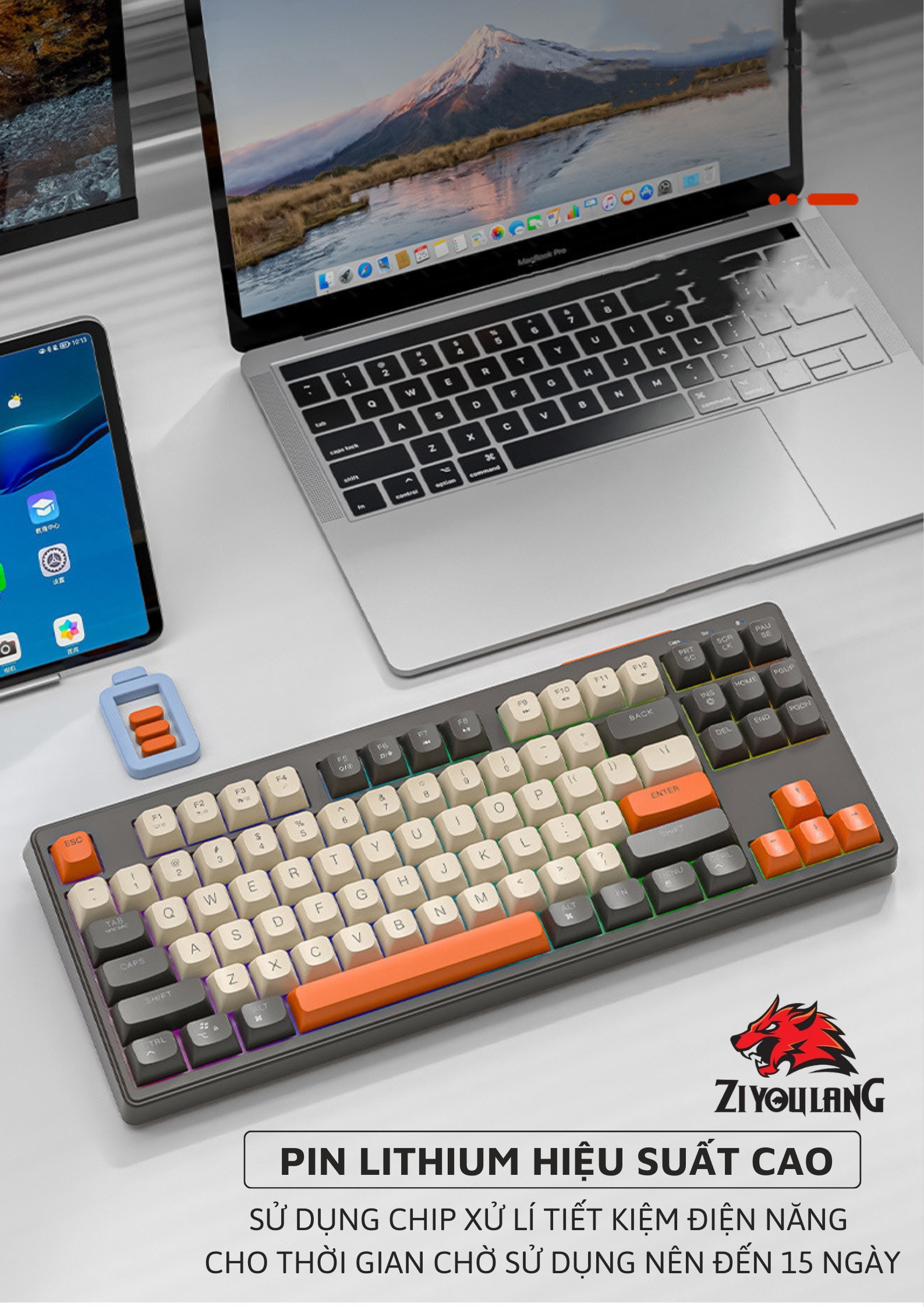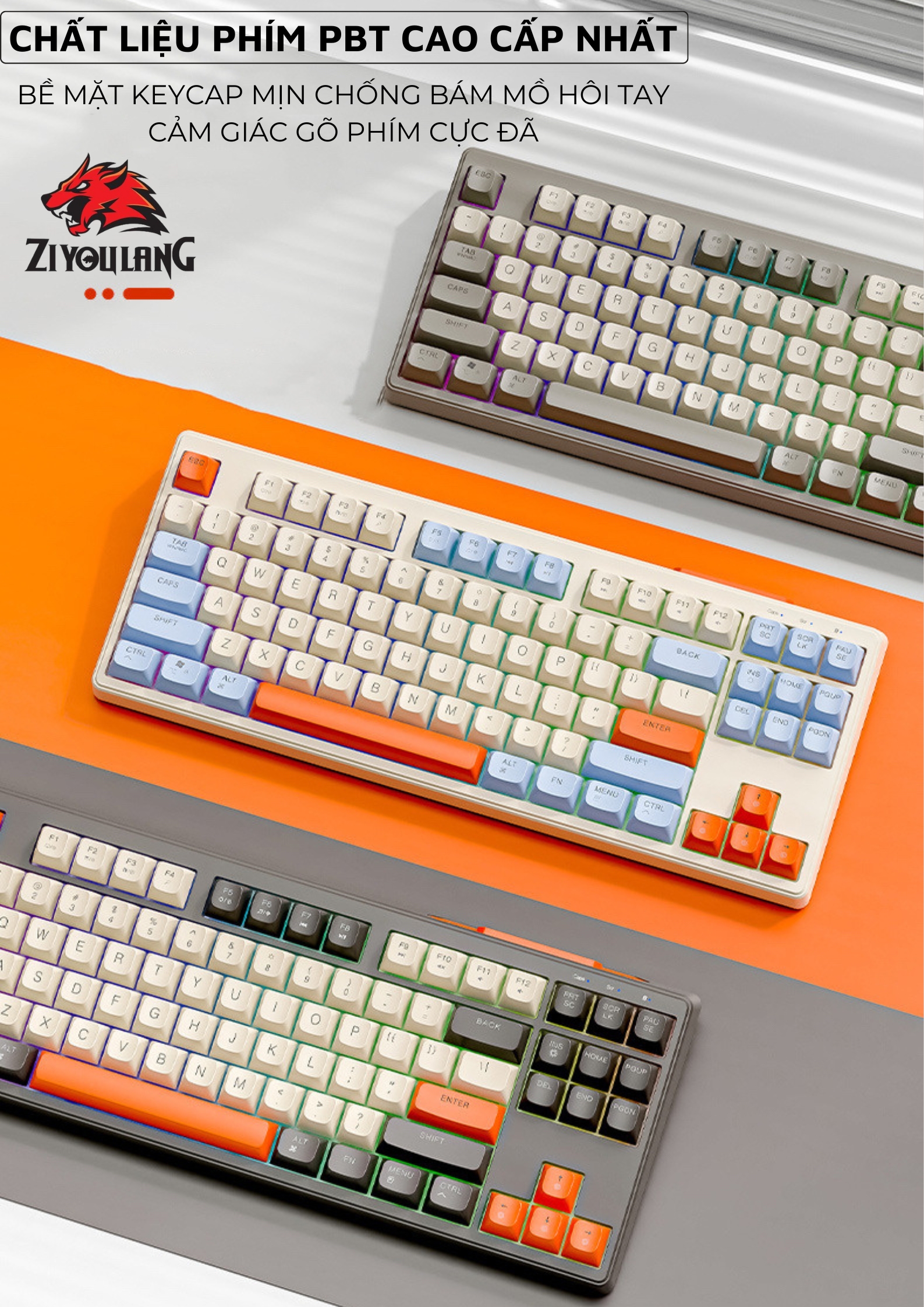 Bàn Phím Không Dây Silent Free Wolf M87 - Led 7 Màu, Phím PBT Cao Cấp, Tương Thích Với Mọi Thiết Bị