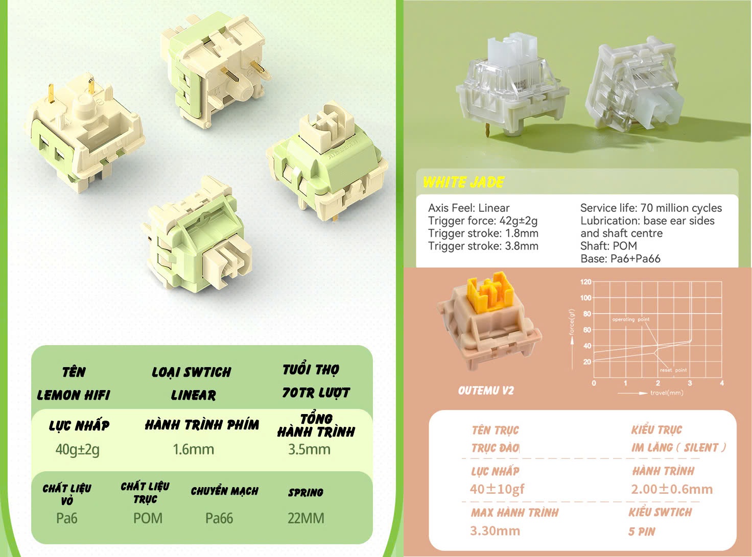 Với thiết kế South Facing giúp cho hiện thị Led tốt hơn khi dùng với Keycap không xuyên led. Ngoài ra thì South Facing cũng sẽ tương thích tốt hơn với các Keycap Cherry hay OEM Profile.
