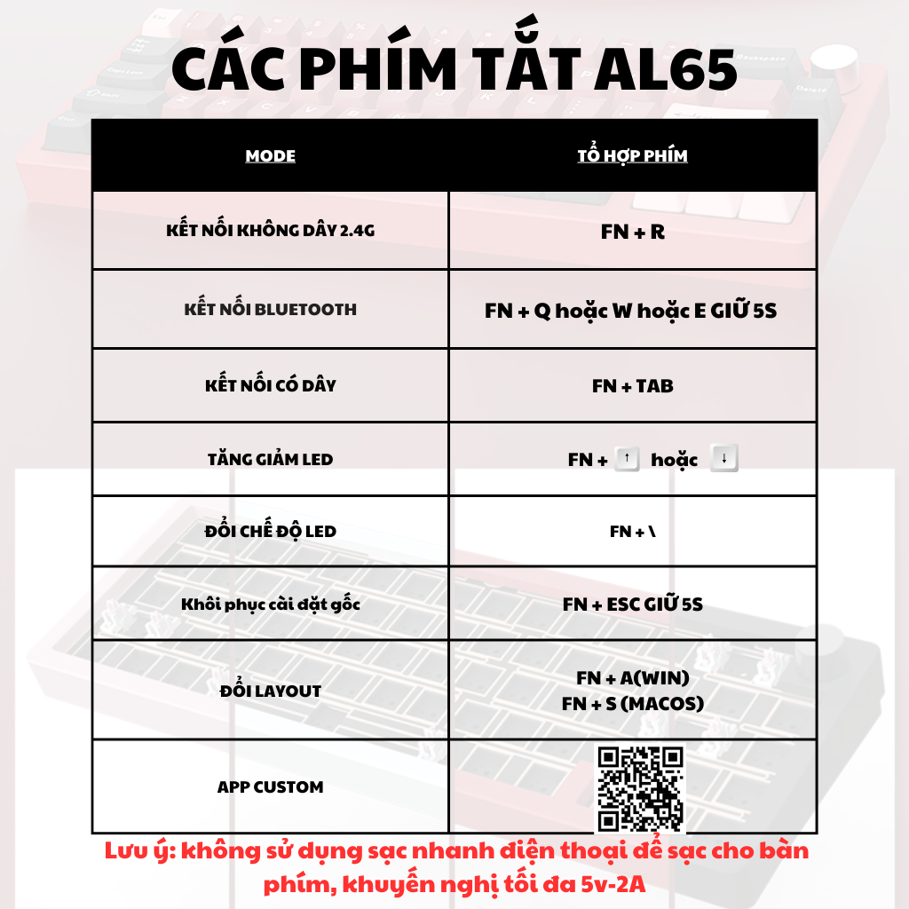 Bàn phím cơ Atas AL65 Khung nhôm CNC 3 mode kết nối - Led RGB - Pin sạc 4000 mah - Có núm xoay