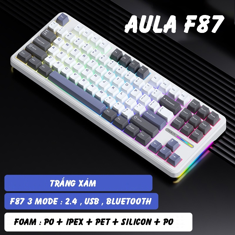 Bàn phím cơ AULA F87- 3 mode kết nối- LED RGB-87 phím- Hỗ trợ Hotswap- Có app Macro