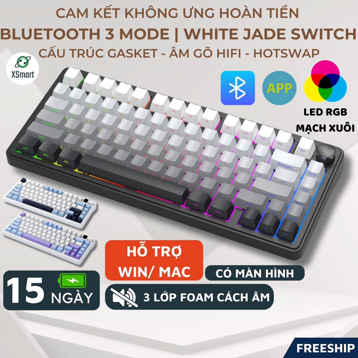 Bàn Phím Cơ Bluetooth Không Dây X85 PRO V2 M75 Led RGB Mạch Xuôi, Hotswap 5 Pin, 3 Mode Kết Nối