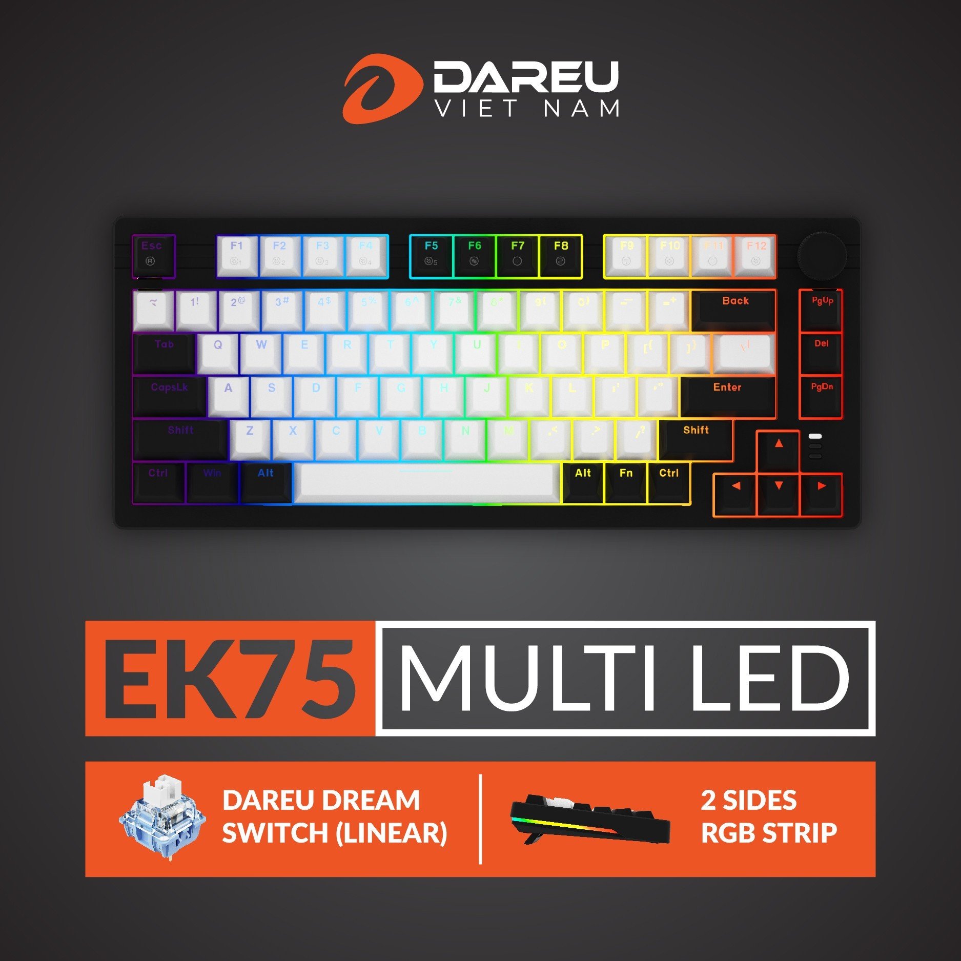 Bàn phím cơ Dareu EK75 White Black ( DareU Dream switch/ FireFly Switch)