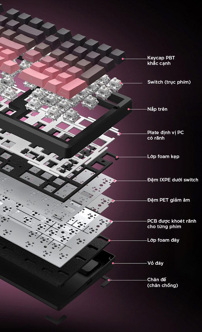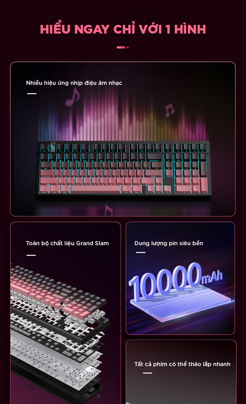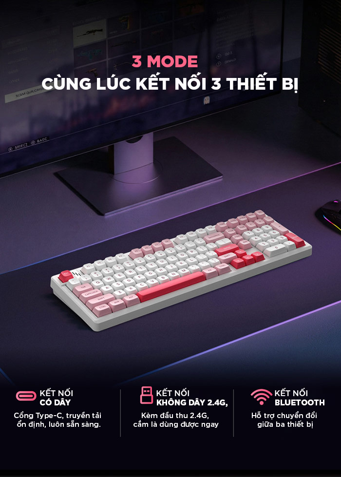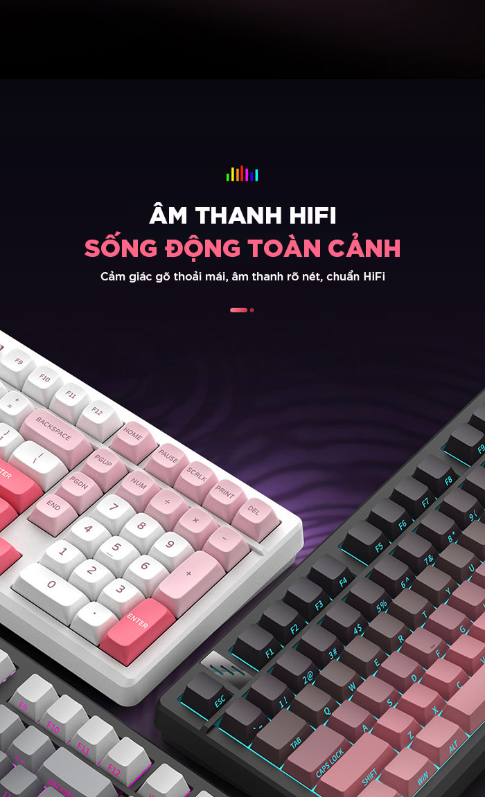 Bàn phím cơ k98 gaming Không dây Bluetooth Silent Switch LED RGB Có Hot-swap cho máy tính/laptop/ipad Có APP tùy chỉnh