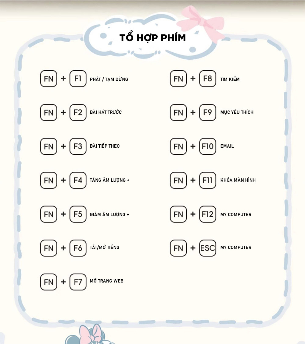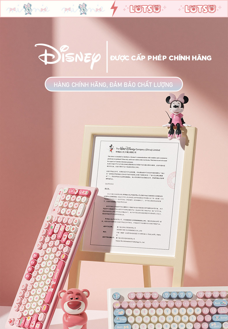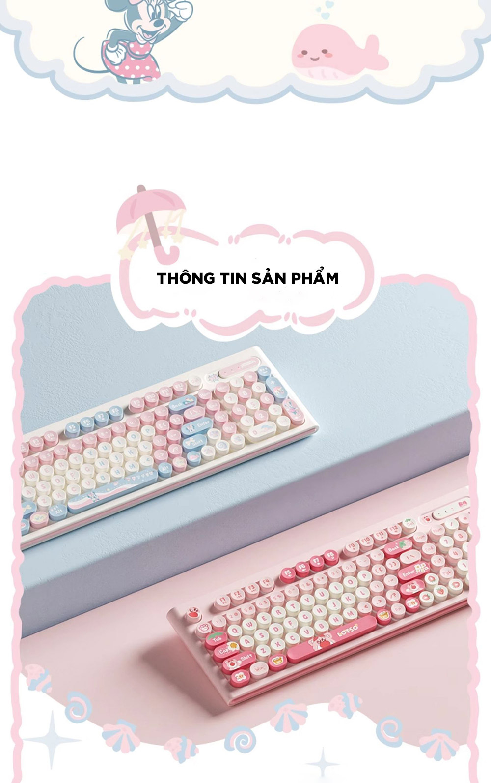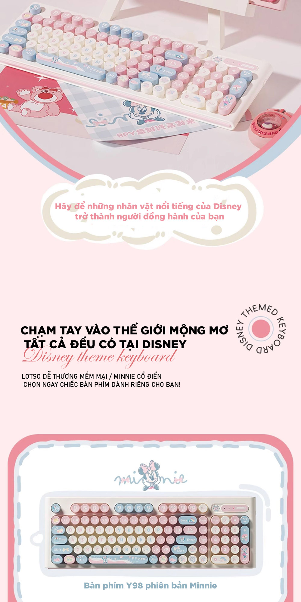 Kết nối tiện lợi: Bàn phím Disney Y98 hỗ trợ kết nối không dây USB 2.4G, giúp bạn không bị vướng dây cáp và mang lại trải nghiệm người dùng cực kỳ tiện lợi. Phù hợp cho cả máy tính xách tay và máy tính để bàn.