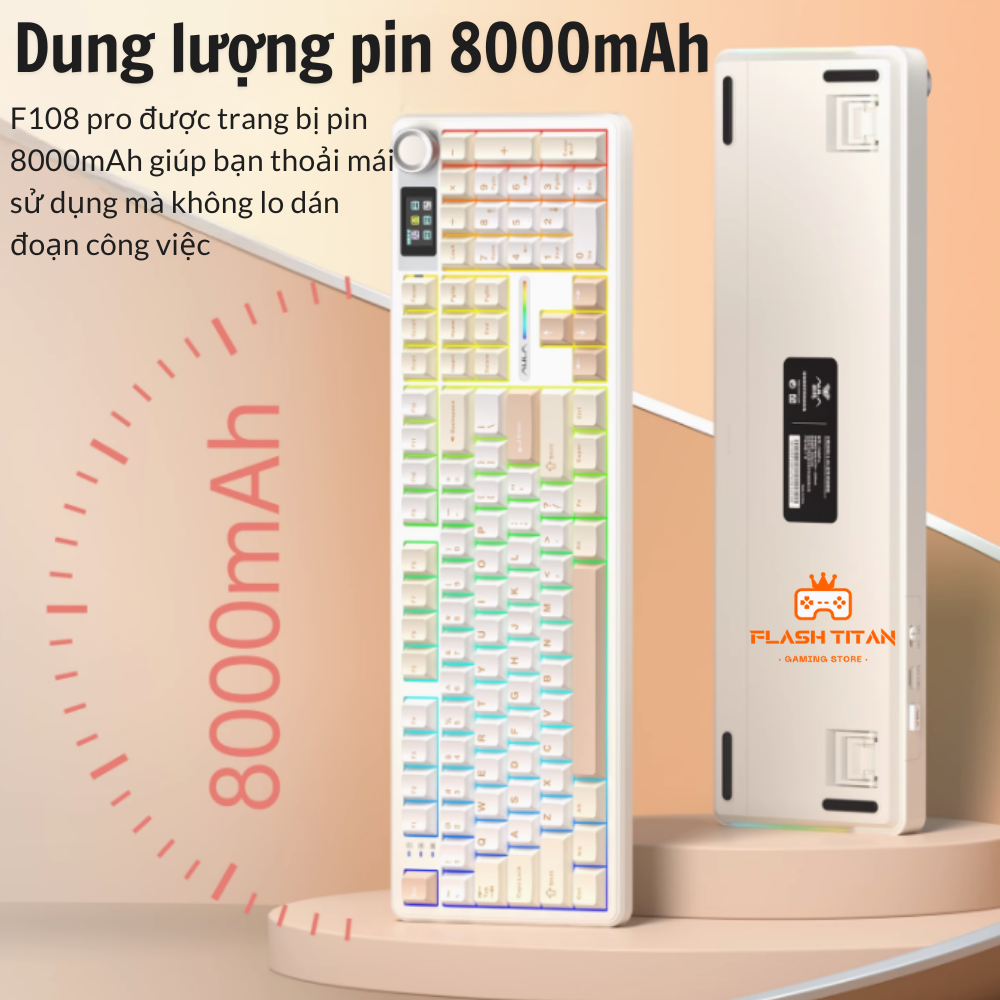 Bàn phím cơ bluetooth AULA F108 PRO - Thiết kế mạch xuôi - Bảo hành 12 tháng - LED RGB nhiều chế độ