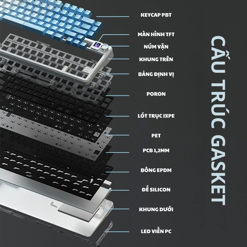 Bàn phím cơ không dây Weika WK75 - 3 mode kết nối - Led RGB - Màn hình TFT - Hỗ trợ app chỉnh led - Hotswap 5 pin