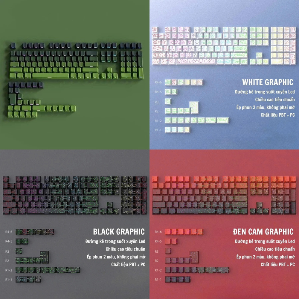 - Keycap : Xanh trắng , Đen đỏ, Ninja