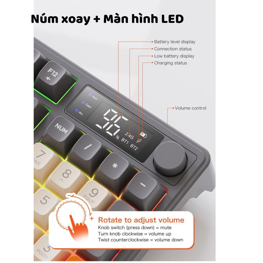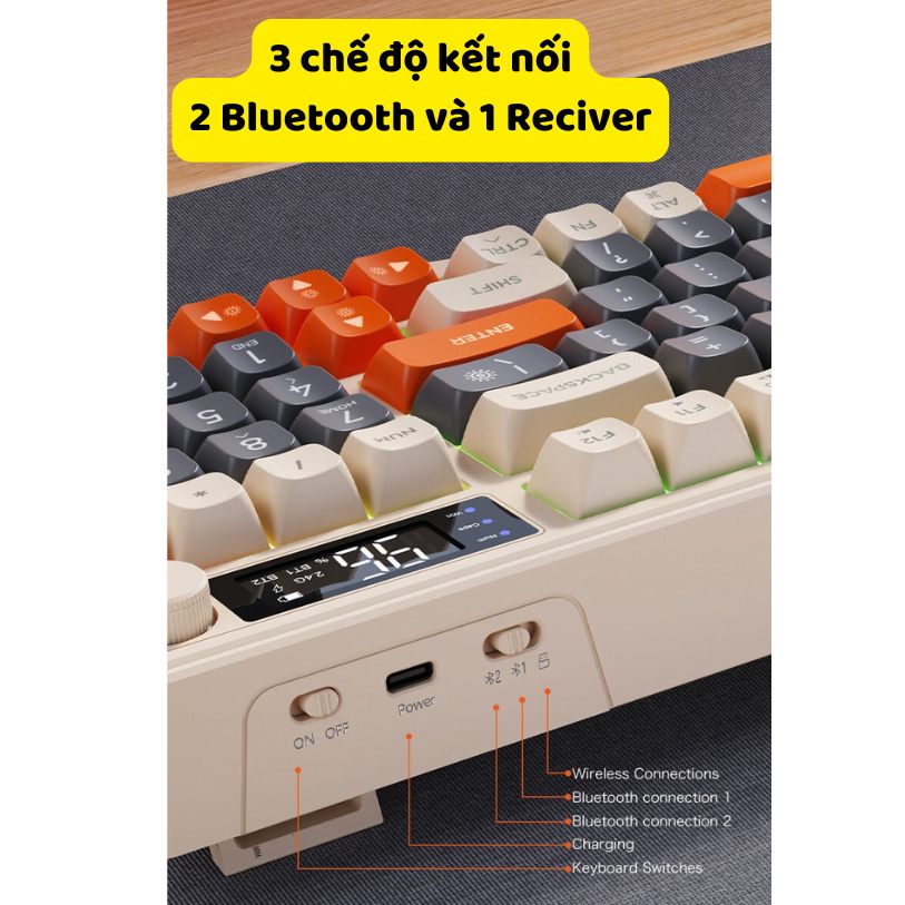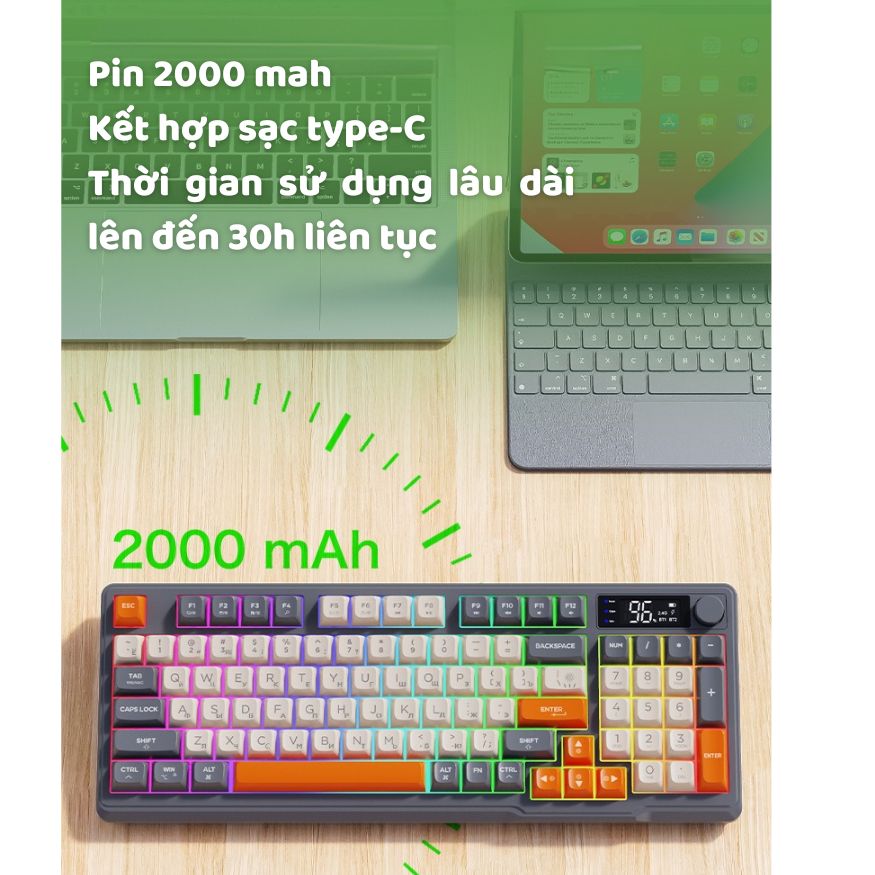 Bàn phím không dây Bluetooth M96 - Led Rainbow - Pin Sạc 2000mah - Phím PBT - Full Size