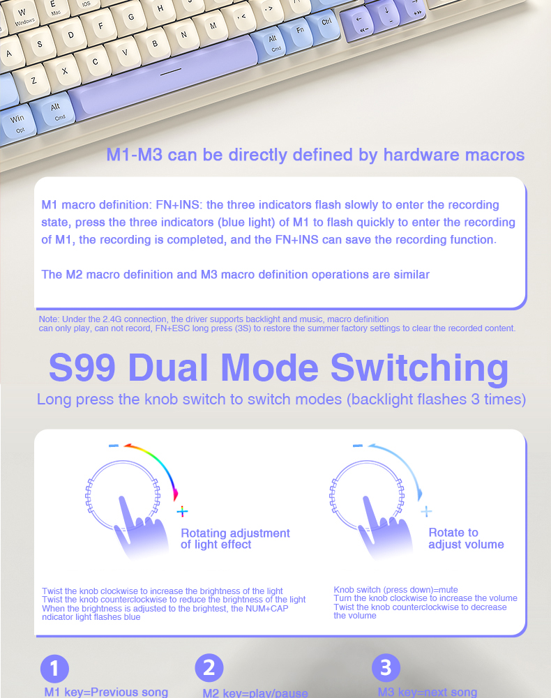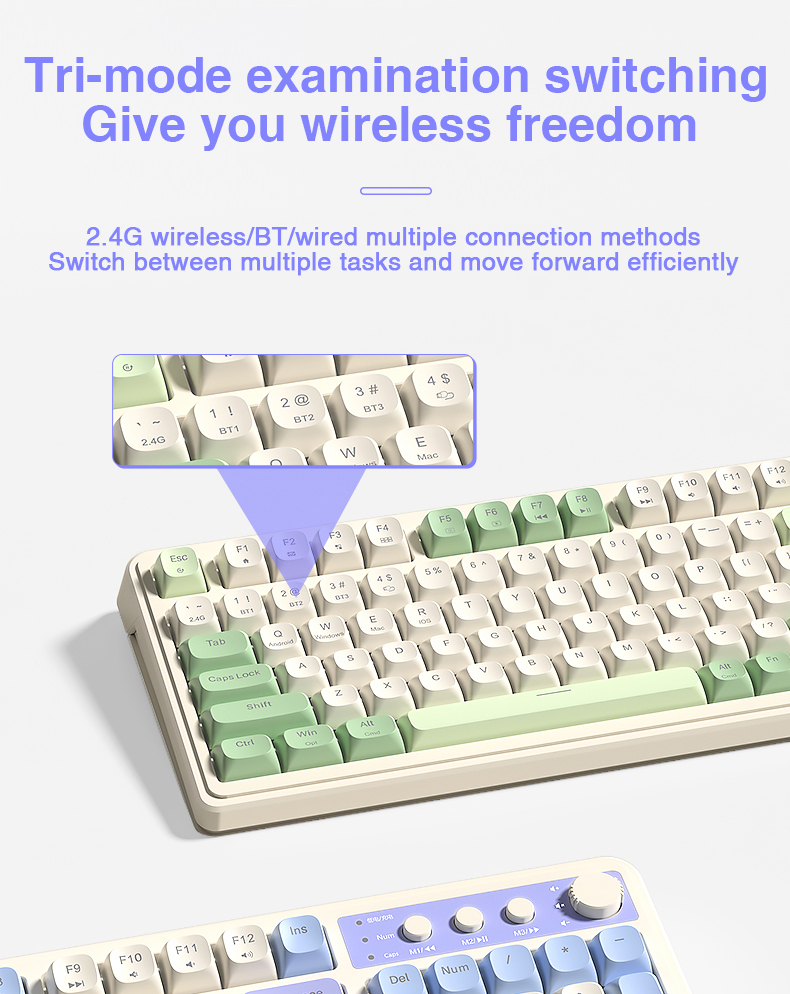 Bàn phím màng không dây AULA S99 99 phím Con lăn đa chức năng RGB ba chế độ cho bàn phím văn phòng và chơi game