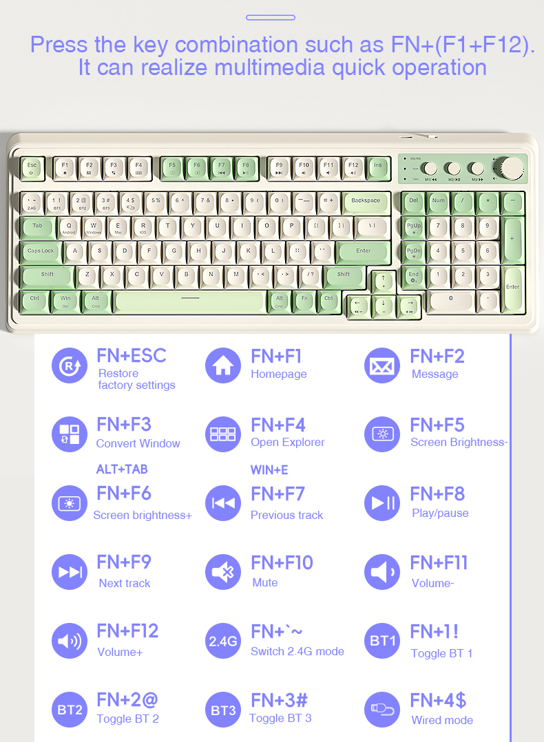 ✨Sử dụng keycaps ABS, bền và không bôi dầu