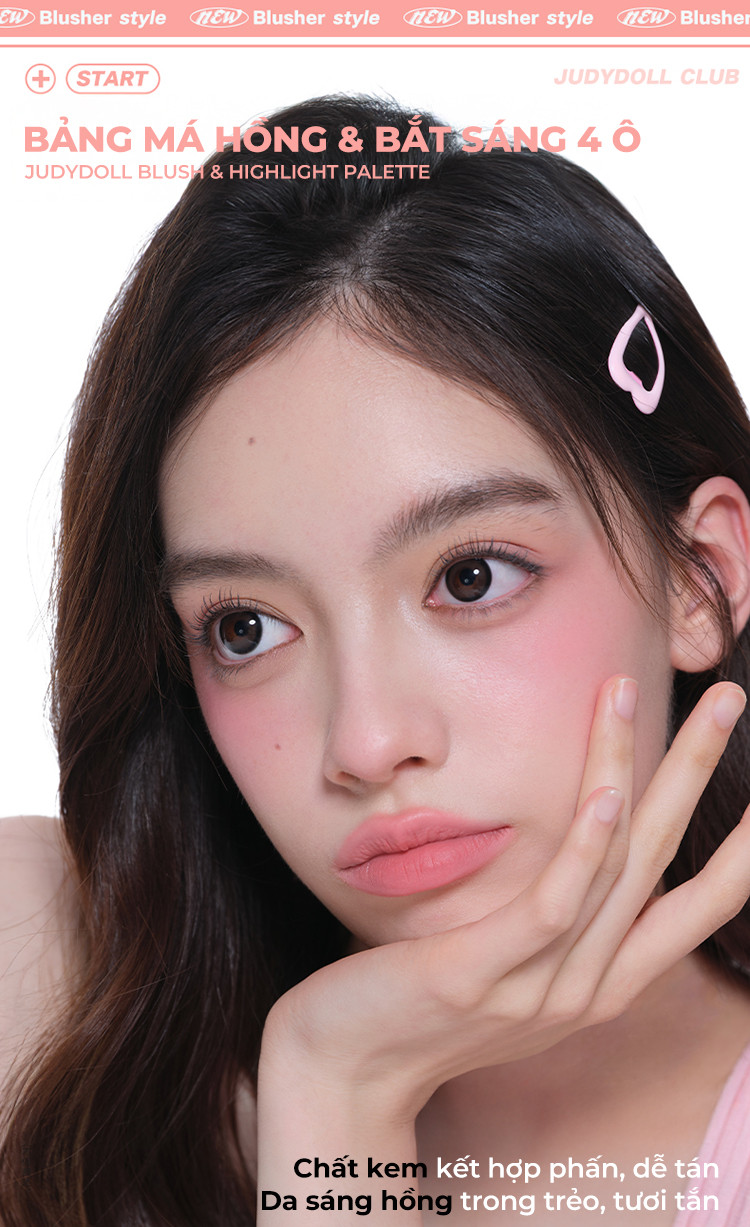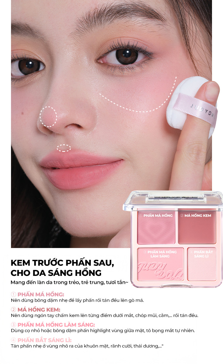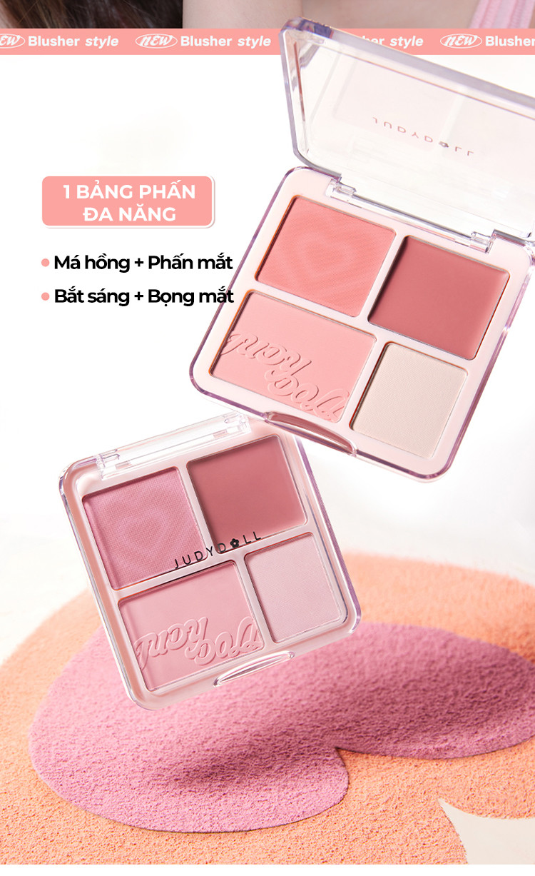 Bảng Phấn Má Hồng Bắt Sáng JUDYDOLL 4 Ô Tông Lì Đa Năng Mềm Mịn Trang Điểm Tự Nhiên Lâu Trôi