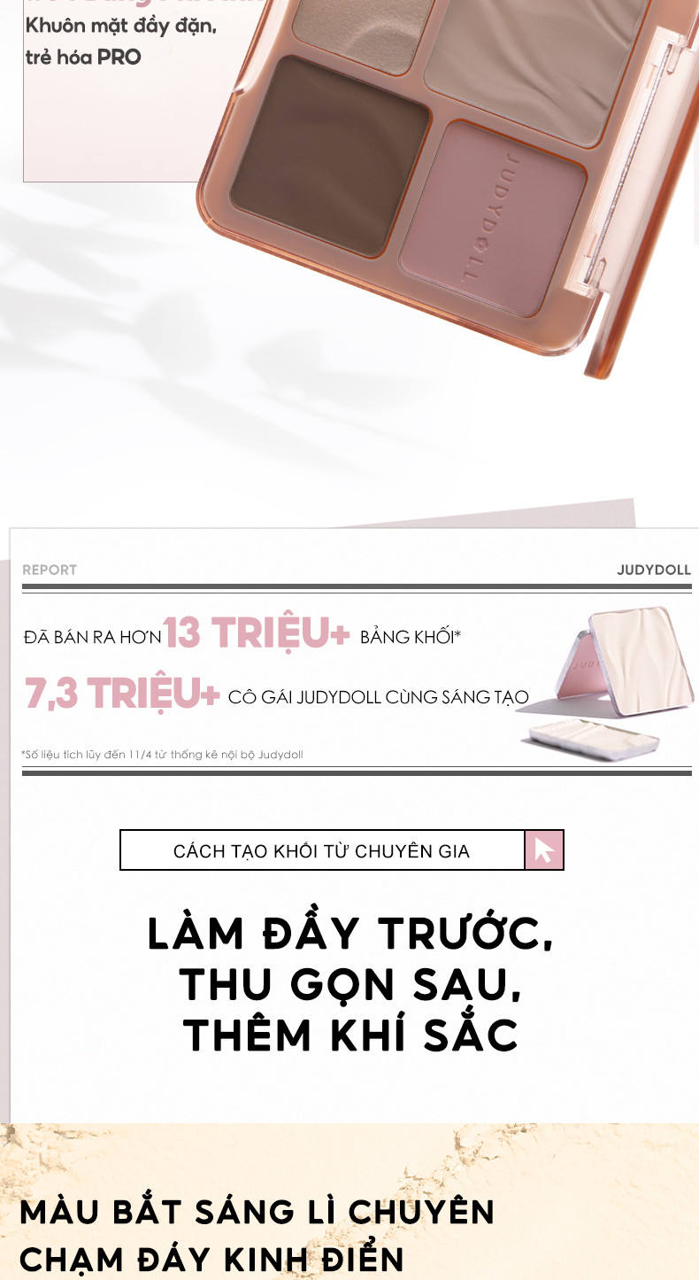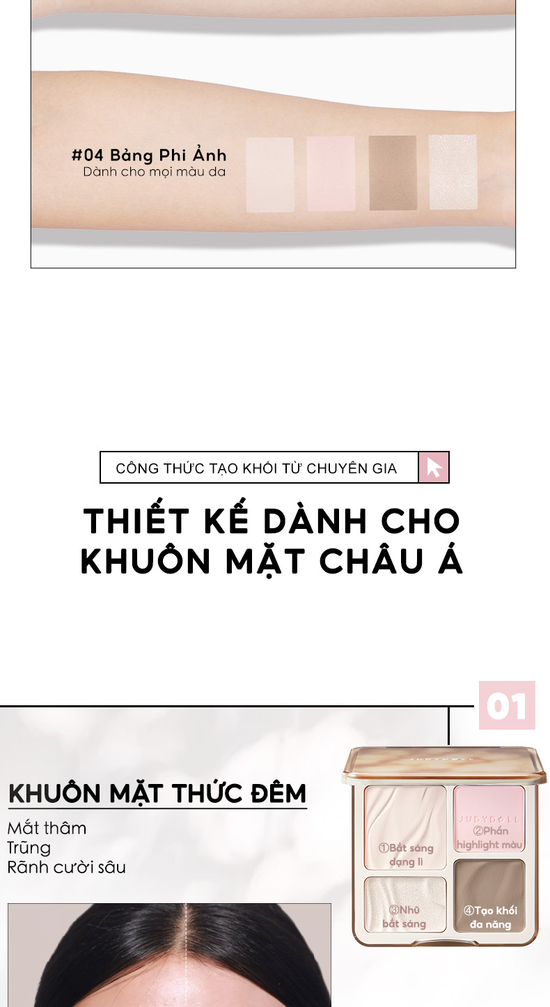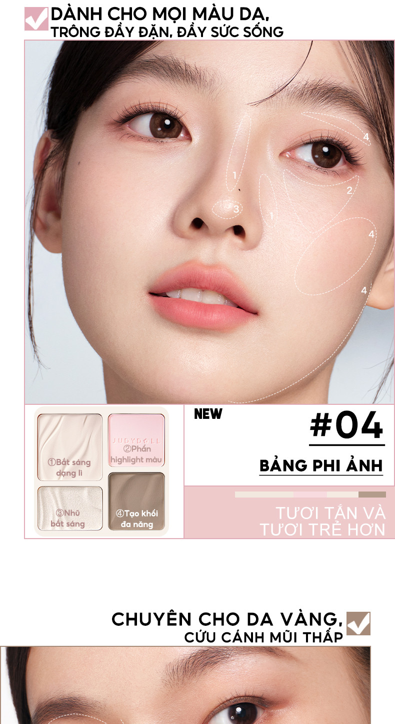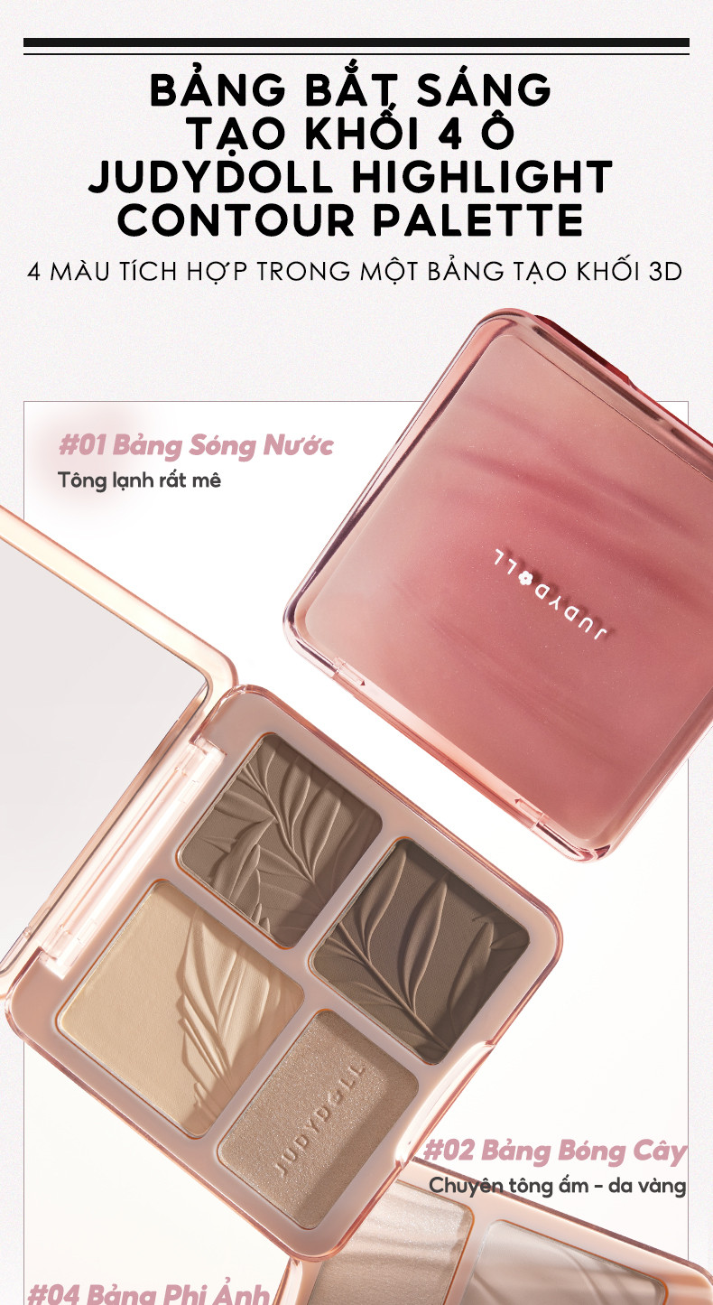 Bảng Phấn Tạo Khối Bắt Sáng 4 Ô JUDYDOLL Highlight & Contour Palette + Bảng Má Hồng & Bắt Sáng 4 Ô JUDYDOLL Highlight & Blush Palette 9g