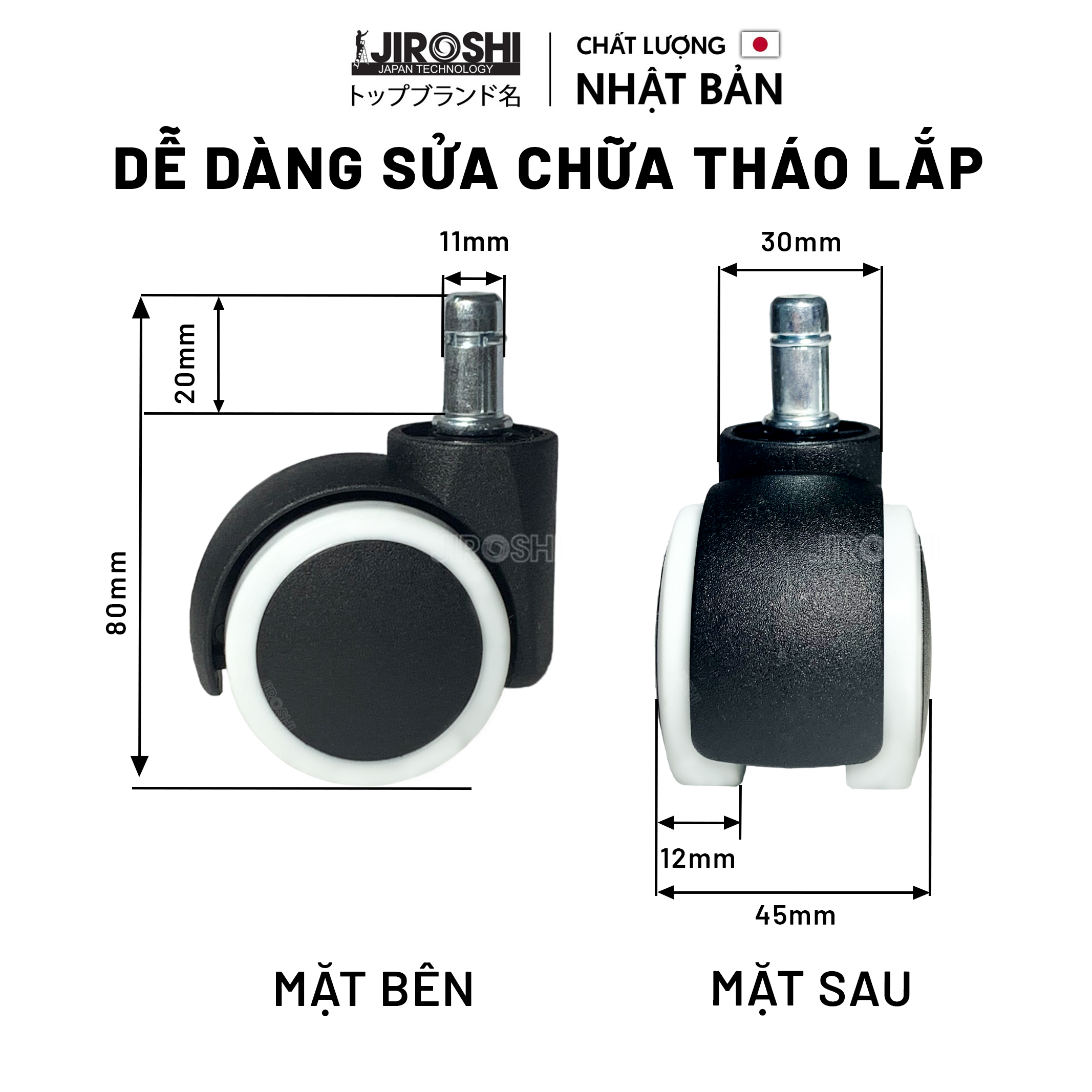 Bánh xe ghế văn phòng cao cấp, bánh xe JIROSHI ghế xoay viền trắng