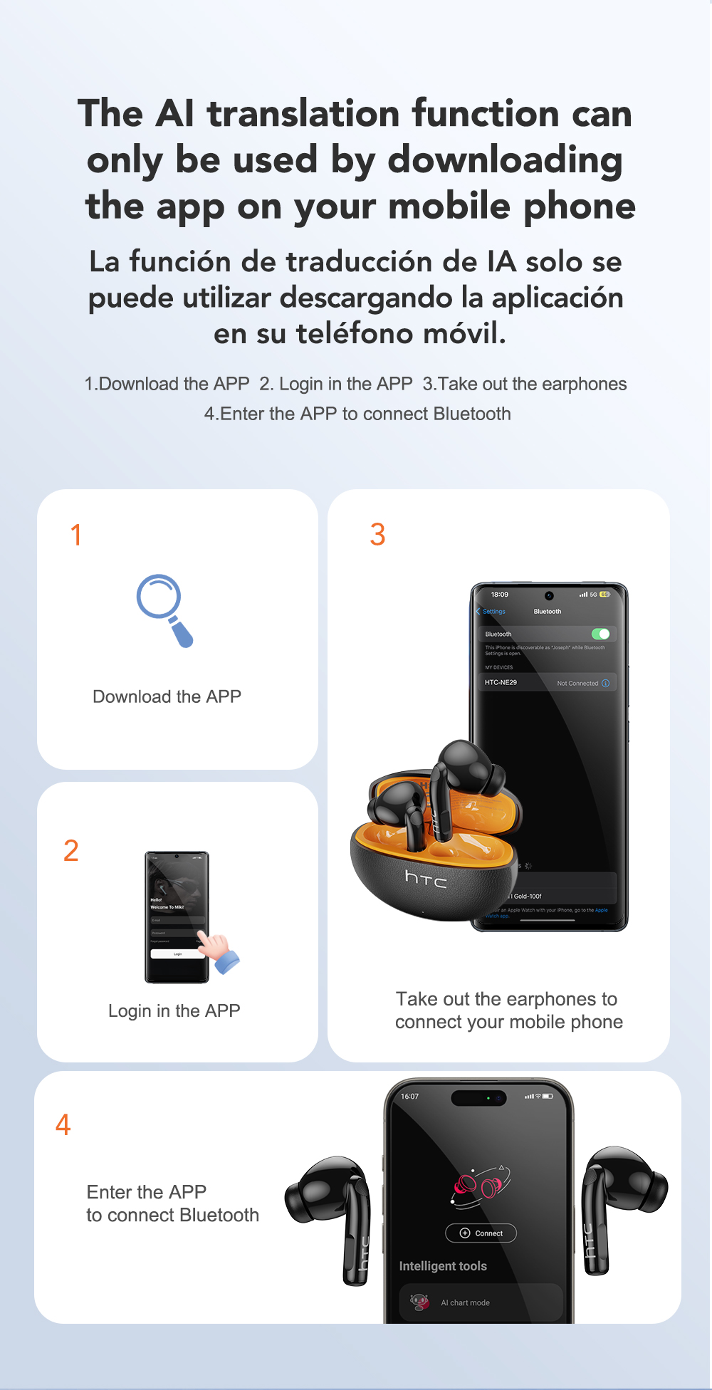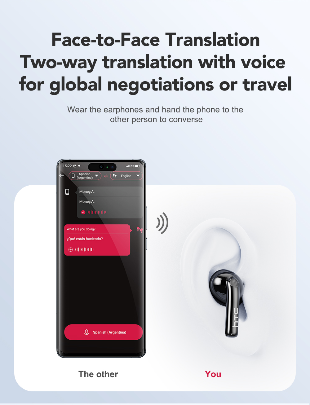 Bảo hành một năm HTC NE29 AI Dịch Tai nghe Bluetooth OWS Da thật Tai nghe Bluetooth Dịch theo thời gian thực 135 ngôn ngữ Khử tiếng ồn thông minh IPX5 Tai nghe không dây thể thao chống nước