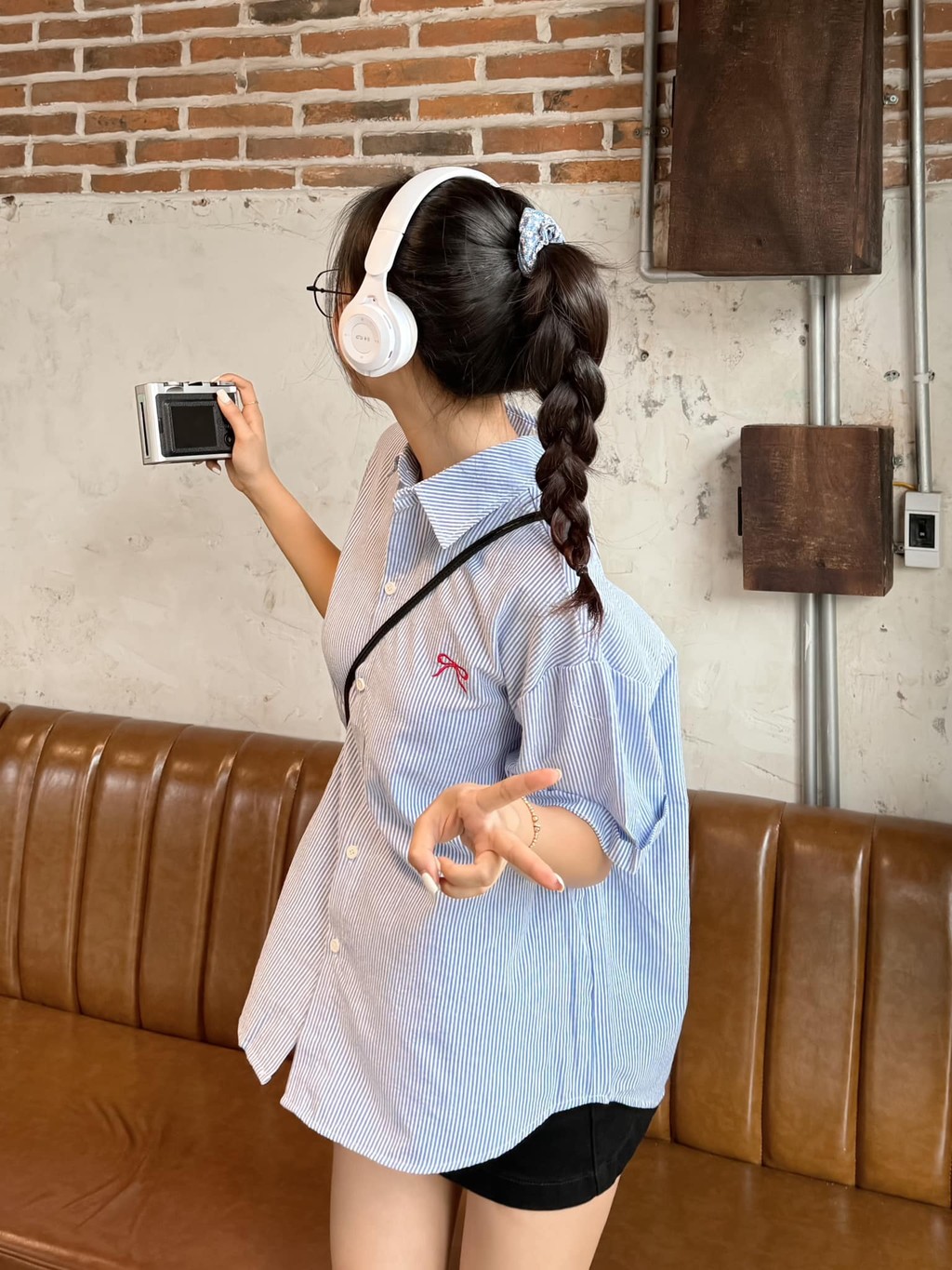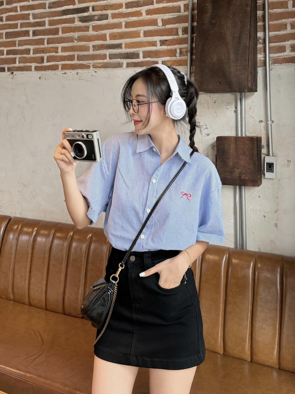BARE_Áo sơ mi tay ngắn thêu xinh , áo sơ mi form rộng chất kate sọc mát, ít nhăn phong cách basic dễ phối đồ _A391, A354