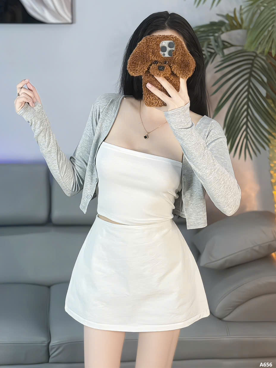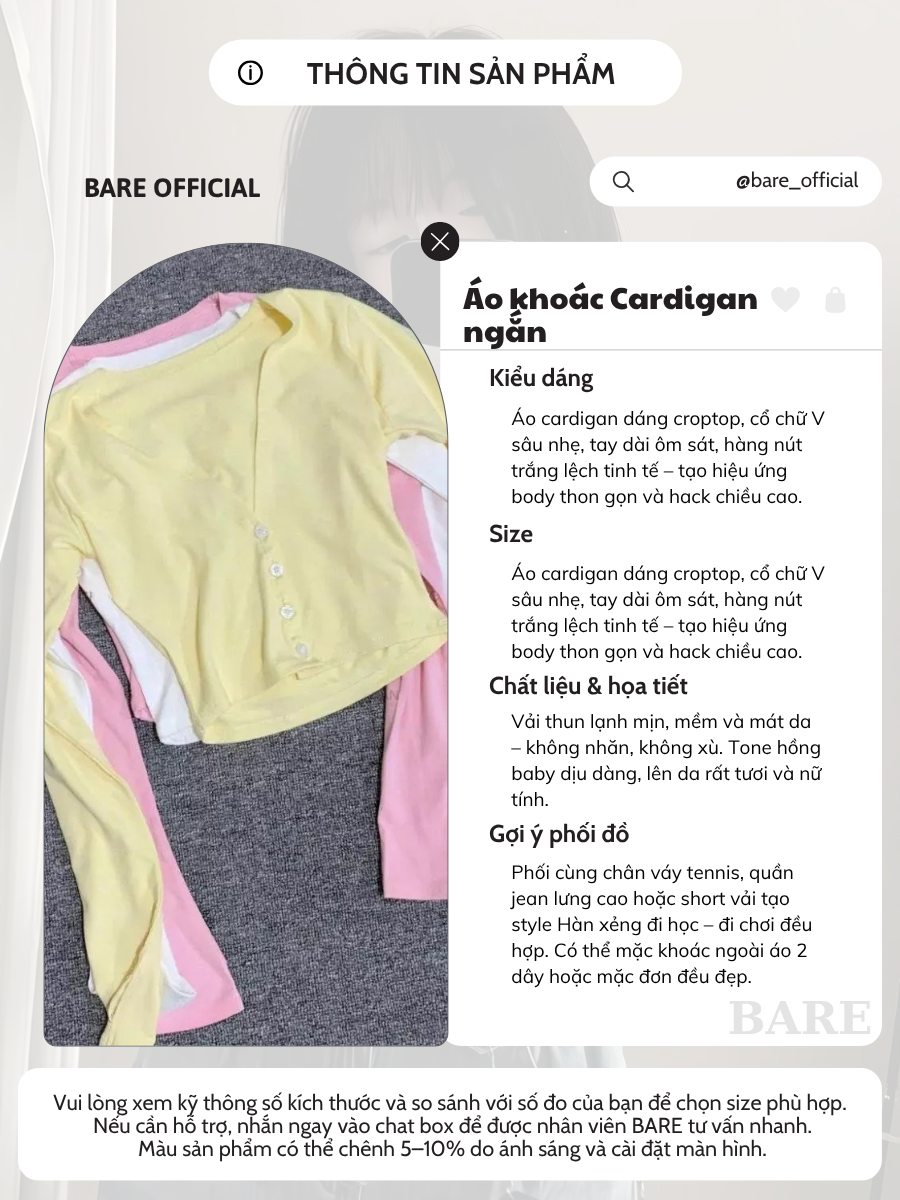 BARE_Áo Khoác Cardigan Basic Hàn Quốc Dáng Ngắn Ôm Body Thun Cotton Nữ Tính_ A656