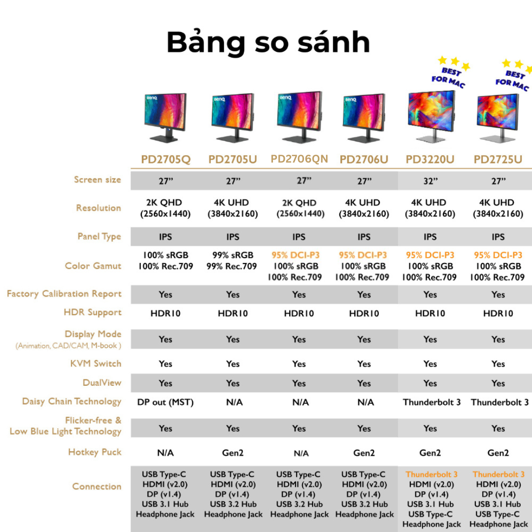 BenQ PD2706U_Màn hình đồ họa 27 inch 4K UHD IPS USB C, P3, HDR10, Eye-are tương thích Mac