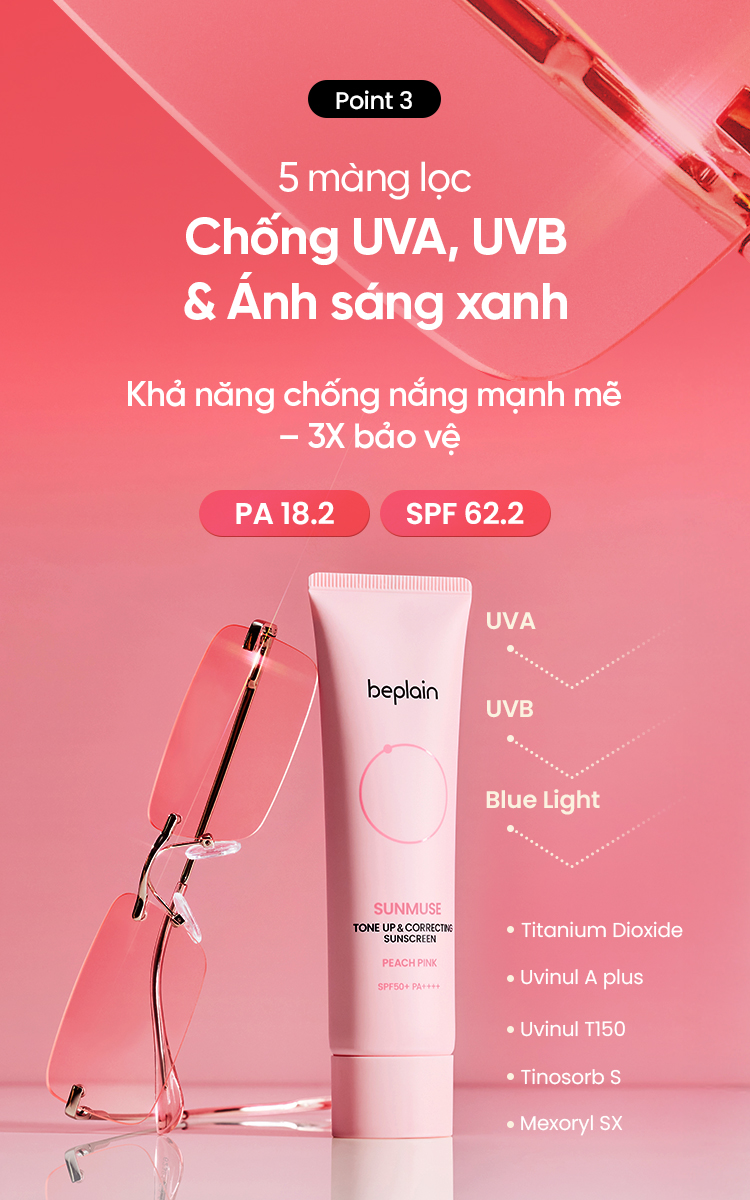 [Beplain Chính Hãng] [Combo độc quyền 50ml X2] Kem chống nắng BEPLAIN Sunmuse lai Vật Lý & Hoá Học, Nâng Tone hồng rạng rỡ và Sáng da SPF 50+ PA+++.+ 50ml+50ml