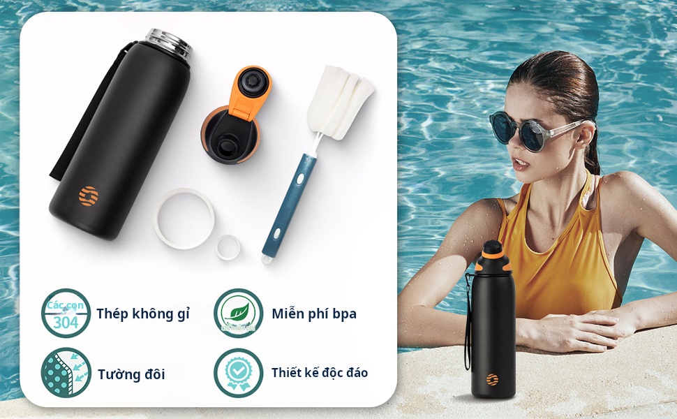 Phụ kiện: 1 x Bình giữ nhiệt, 1 x Cọ rửa cốc