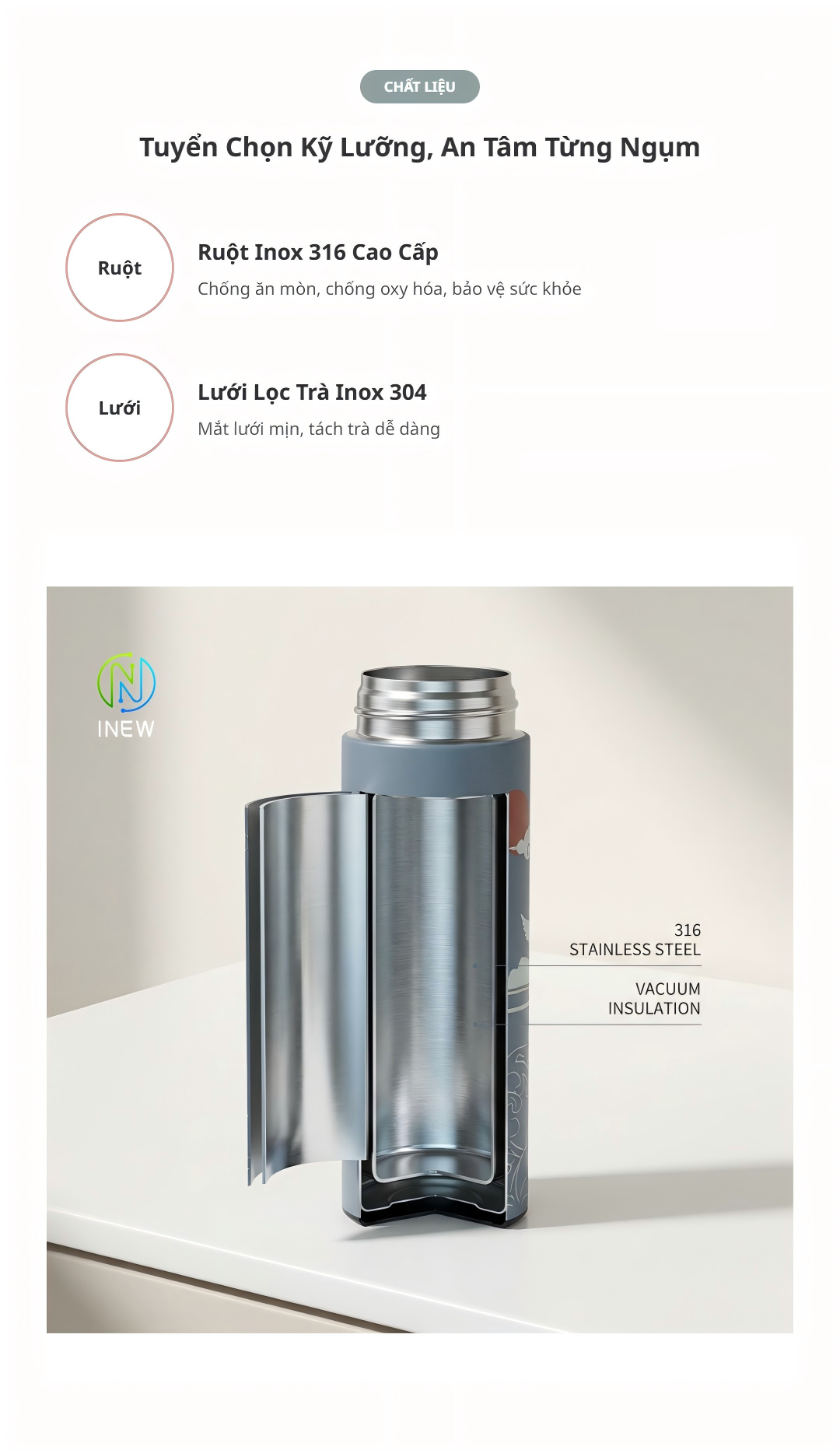 3. Hiệu quả giữ nhiệt cực mạnh, có thể giữ nhiệt từ 12-24 giờ, có chức năng pha trà