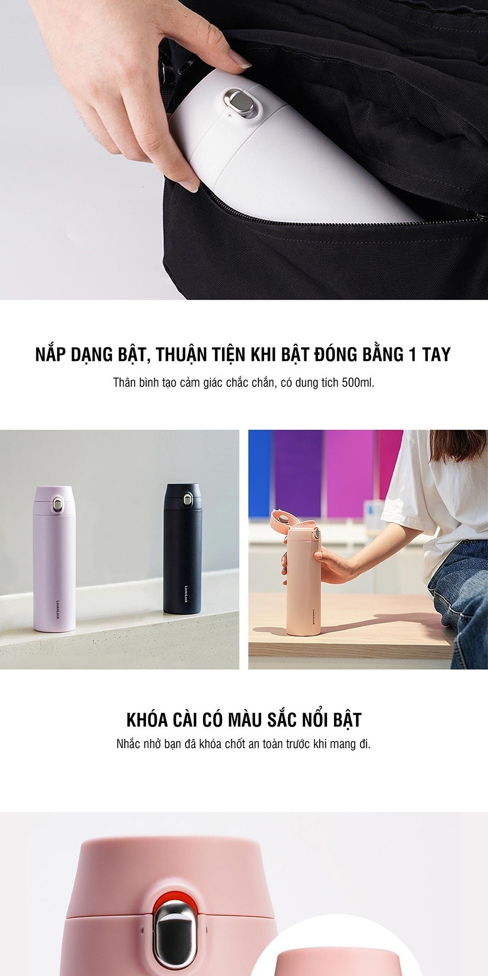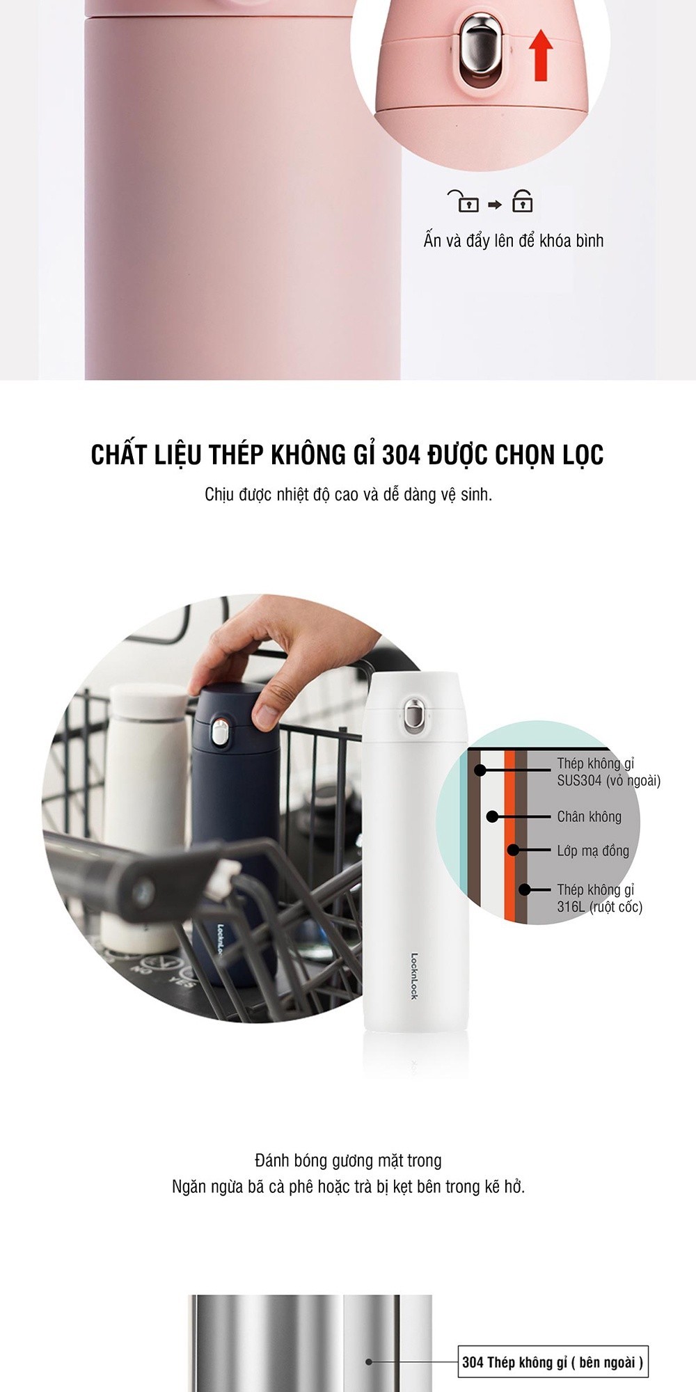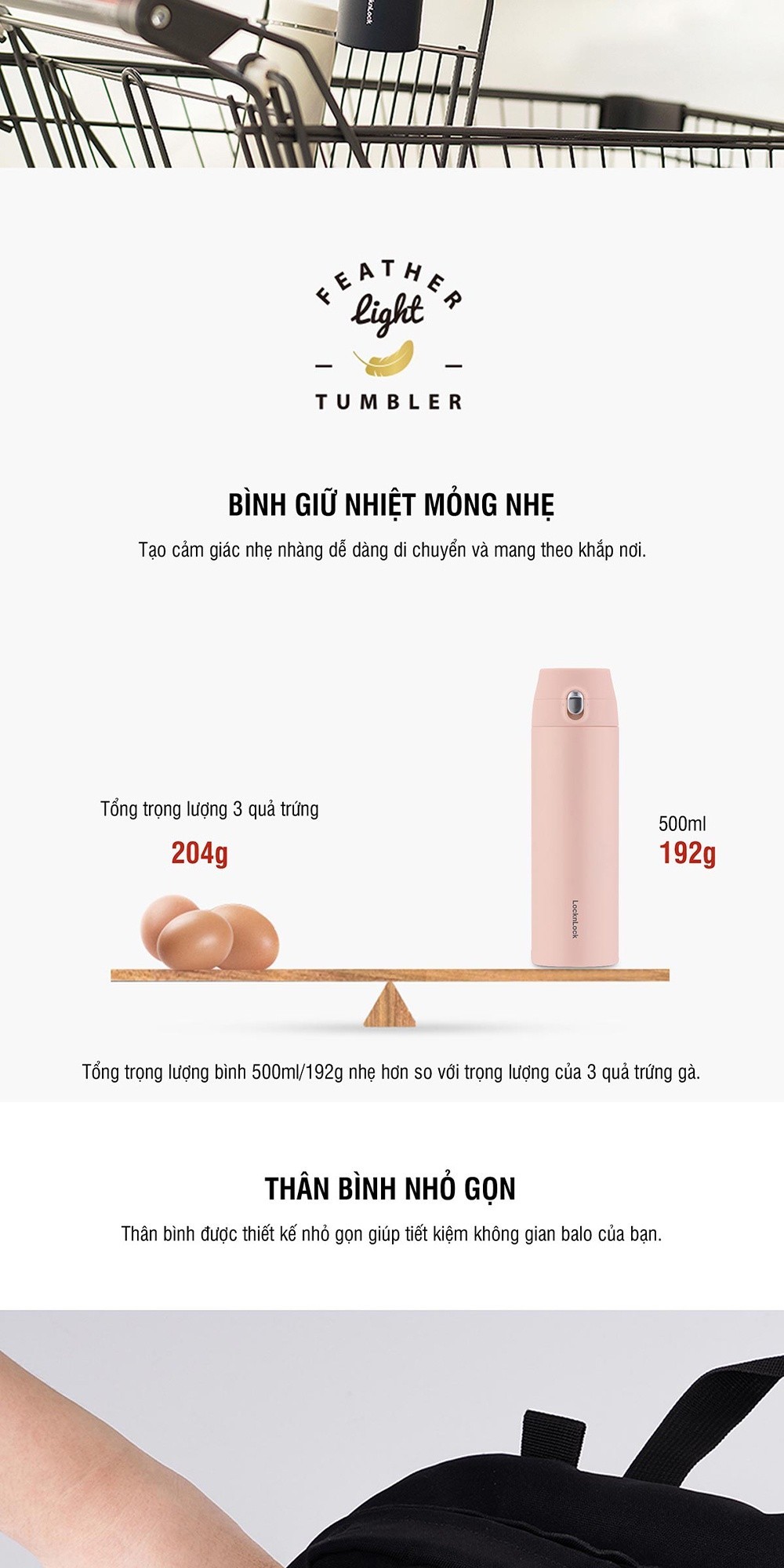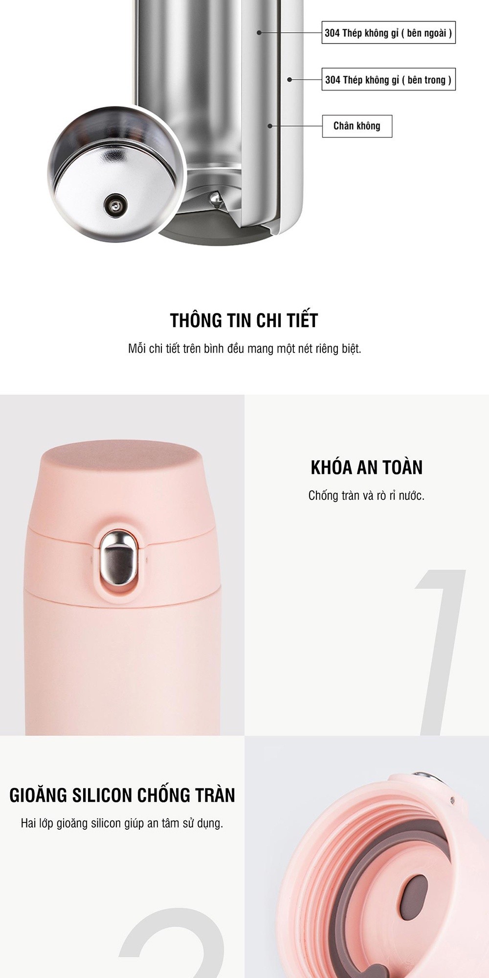 - Bình giữ nhiệt mỏng nhẹ tạo cảm giác dễ dàng trong di chuyển và mang theo khắp nơi.