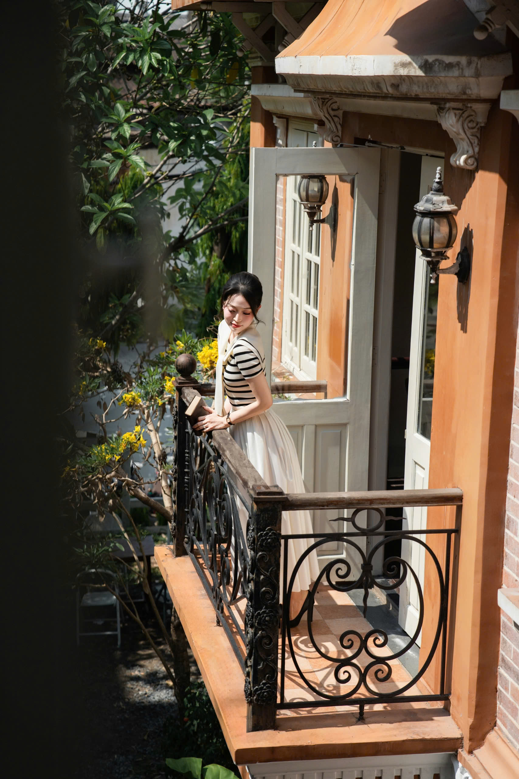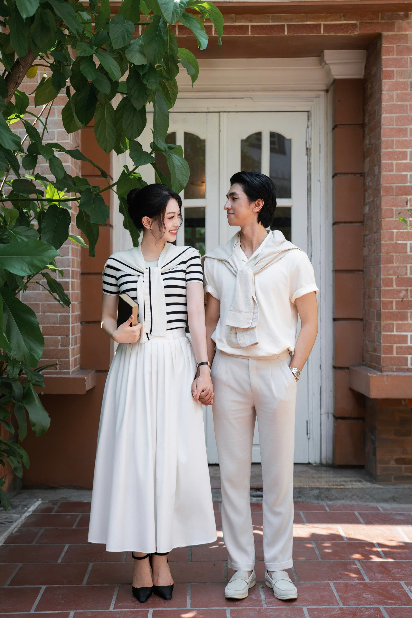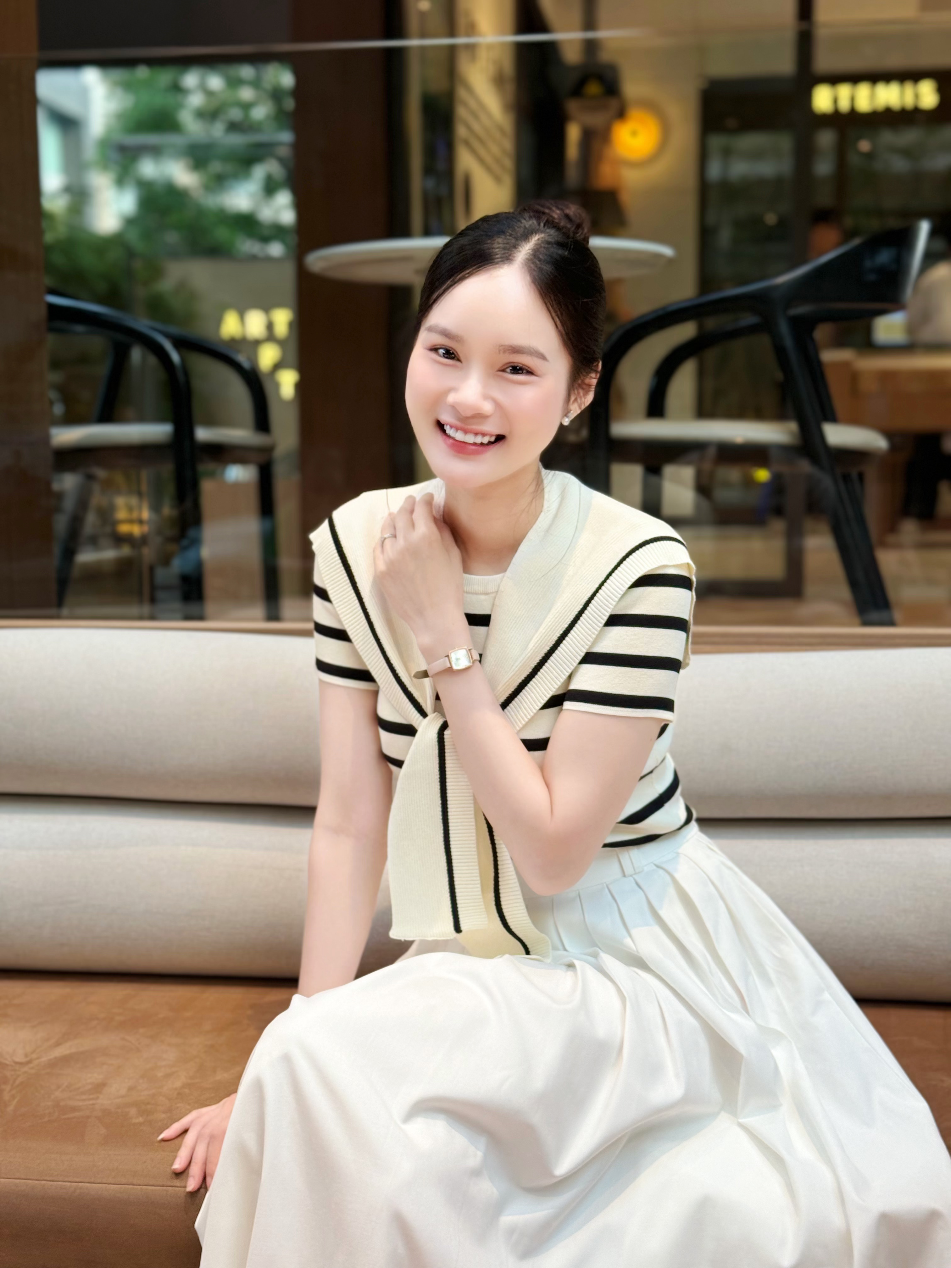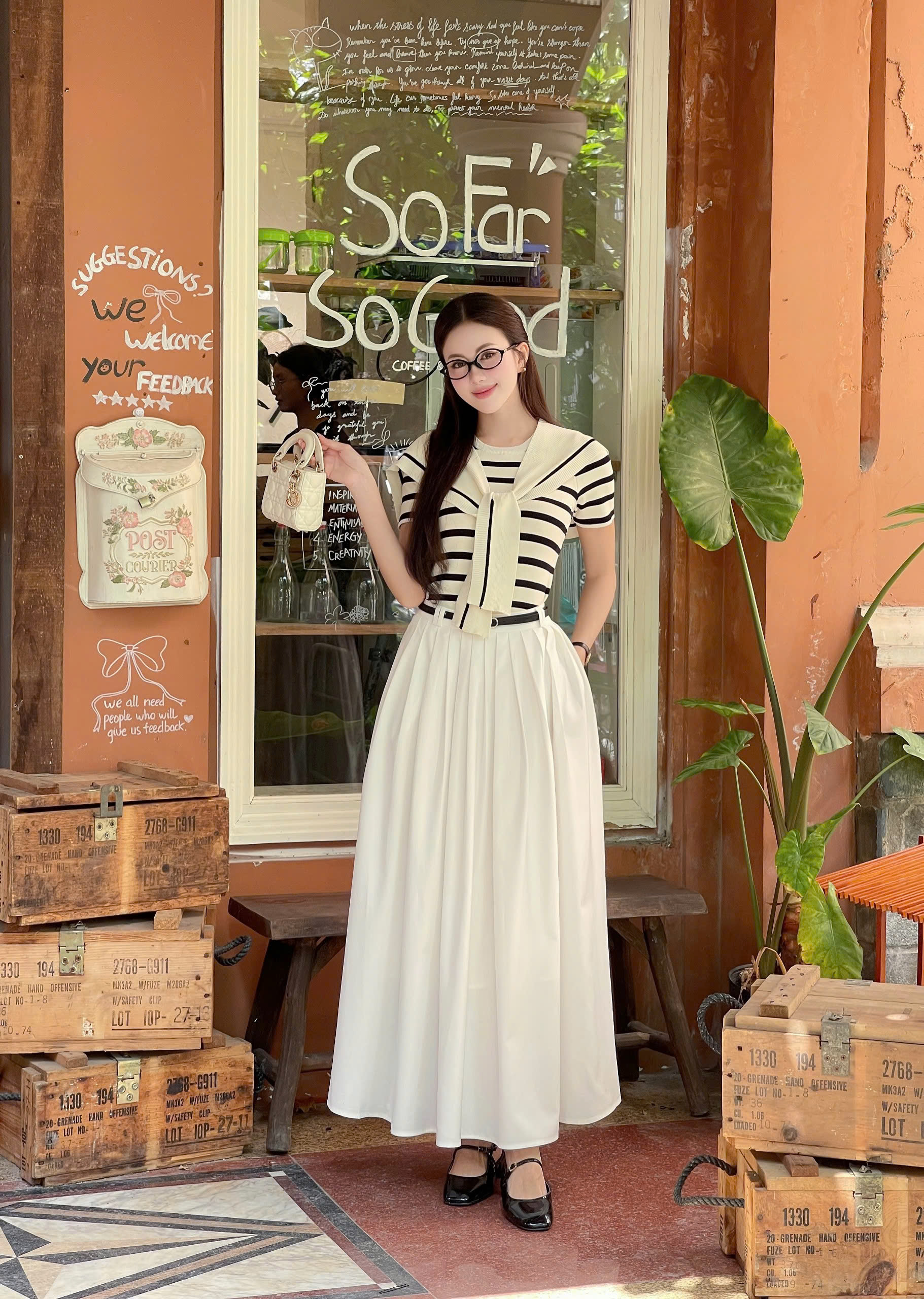 (Blue to Bloom) Áo dệt kim kẻ kèm khăn thêu logo, chất liệu cao cấp, mềm mát thời trang thiết kế Calie AF167 - CX065