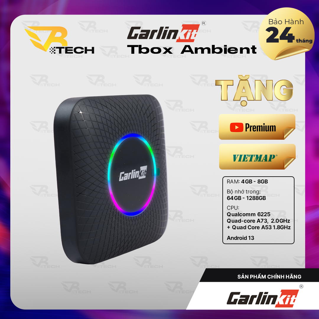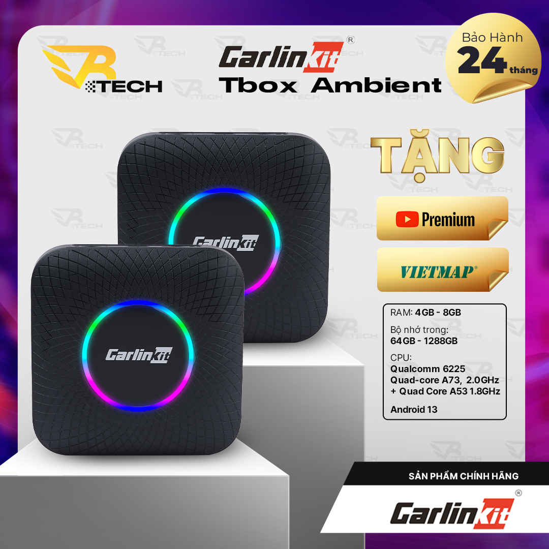 Bộ Android Box Chính Hãng Carlinkit Tbox Ambient Led Qualcomm 6225, Tbox Plus Qualcomm 6125 tặng VietmapS2 dành cho ô tô