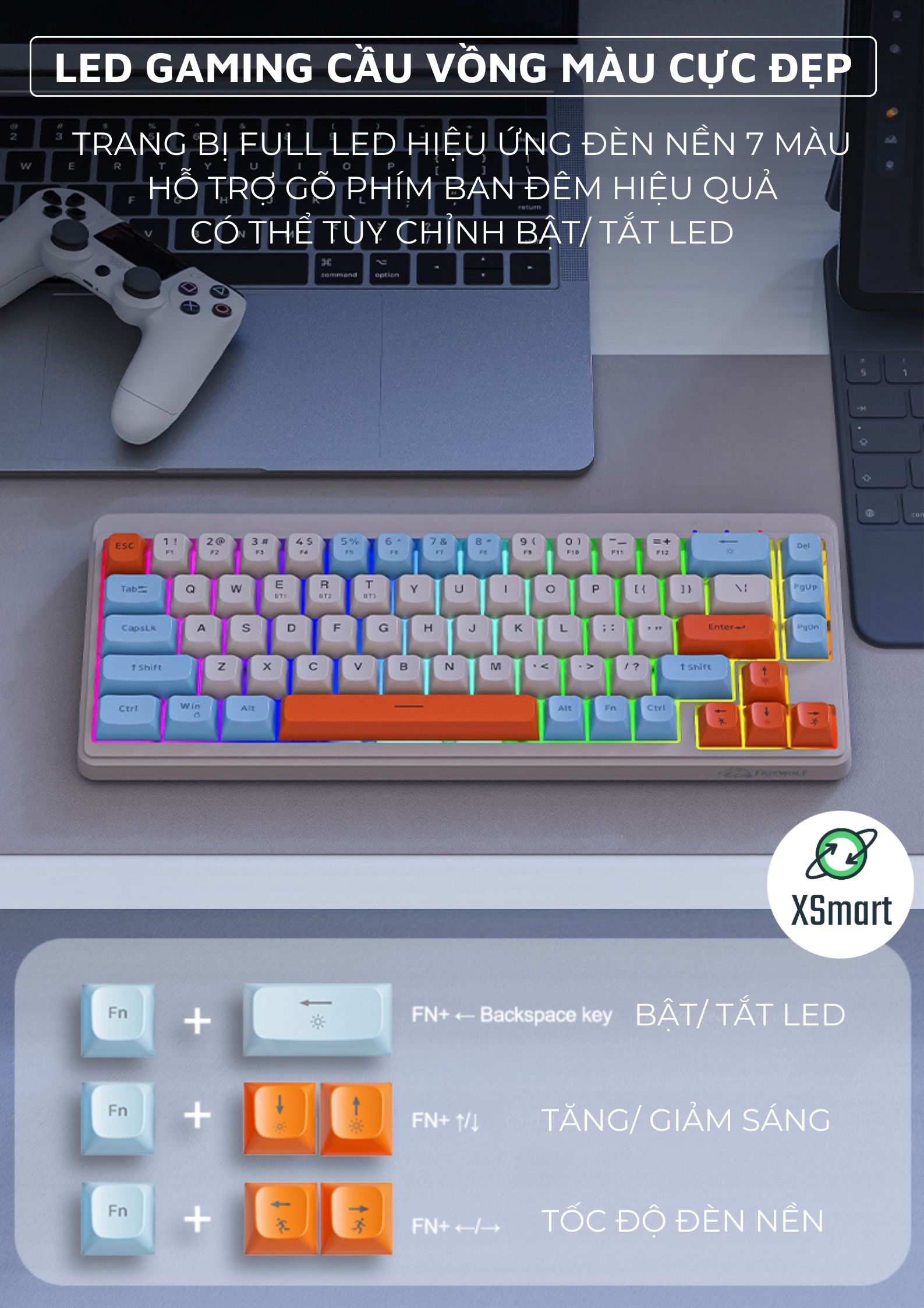 Hiệu ứng ánh sáng Rainbow rực rỡ: Tạo điểm nhấn nổi bật, tăng thêm phần sinh động cho góc làm việc của bạn.