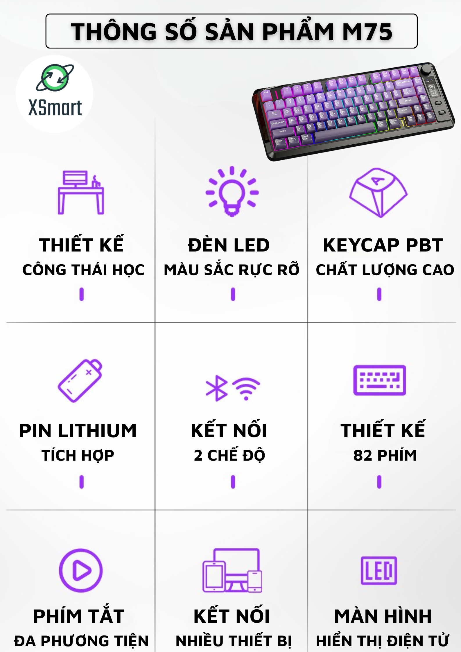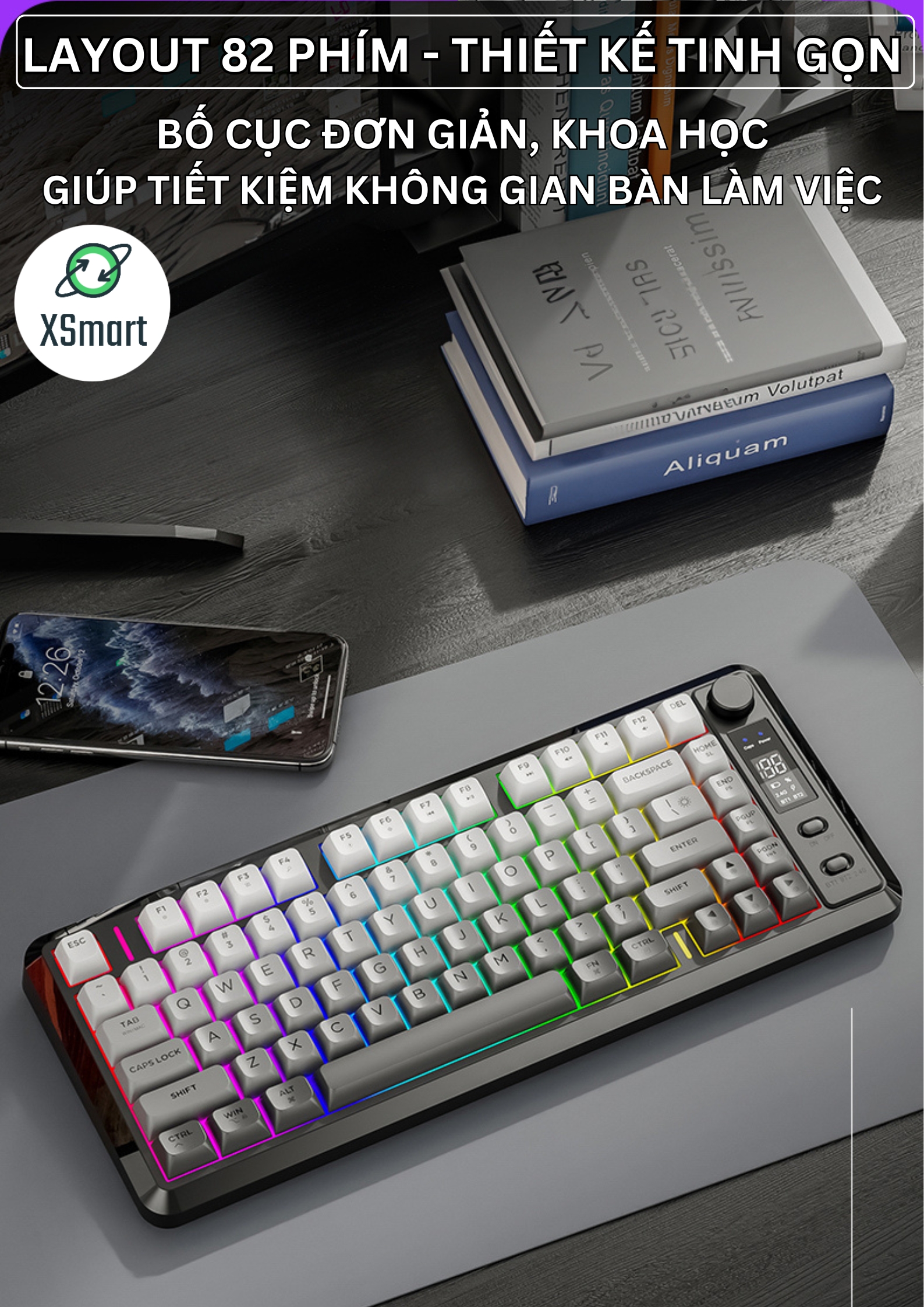Thiết Kế Nhỏ Gọn: Layout 82 phím tối ưu không gian, phù hợp cho cả bàn làm việc nhỏ.
