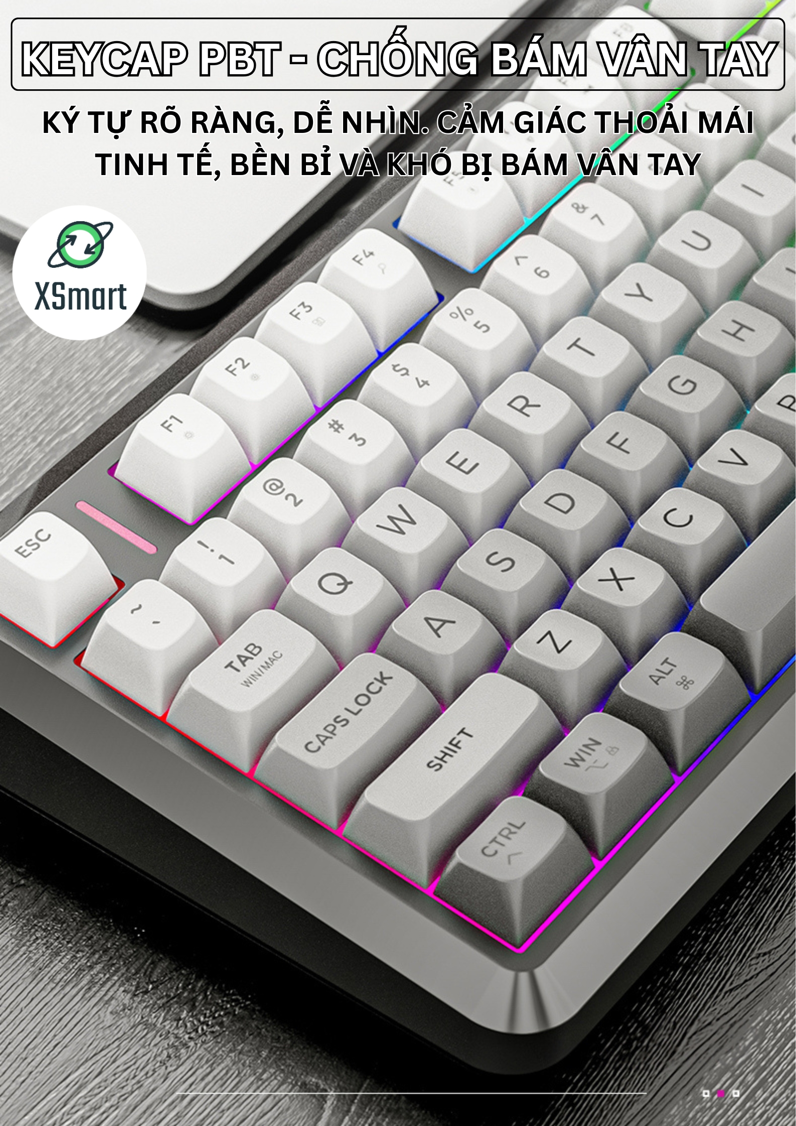 Keycap PBT Cao Cấp: Chống trơn trượt, mang lại cảm giác gõ thoải mái và bền bỉ.