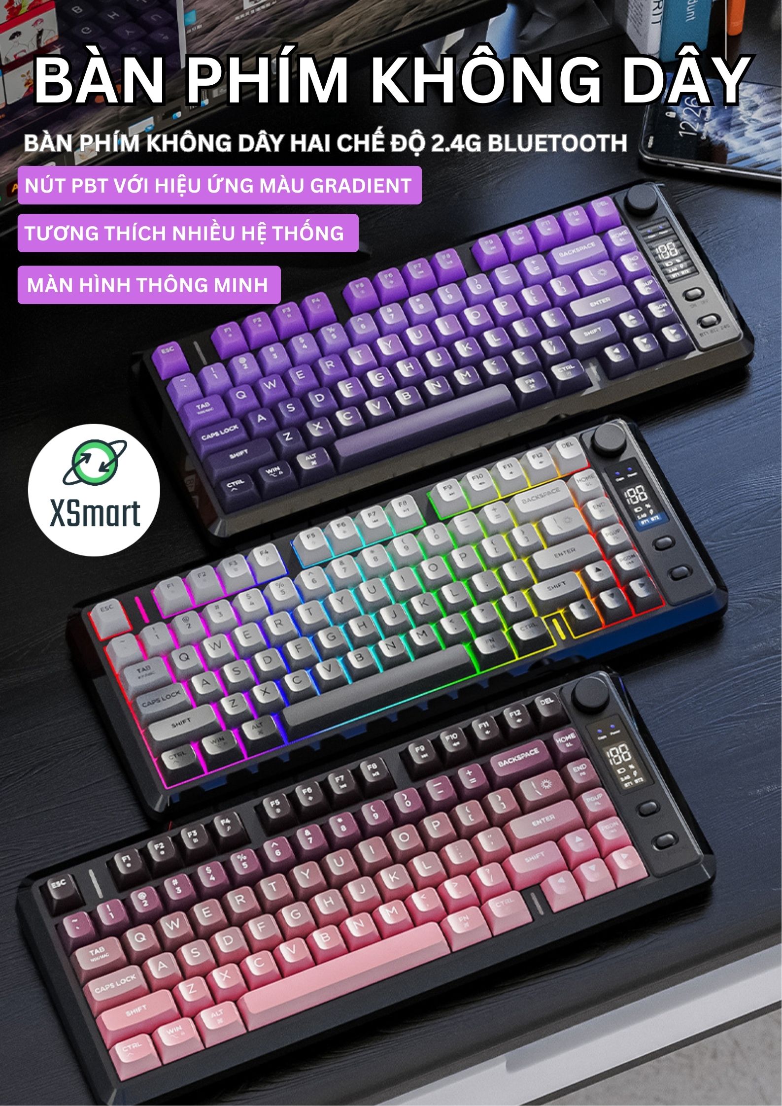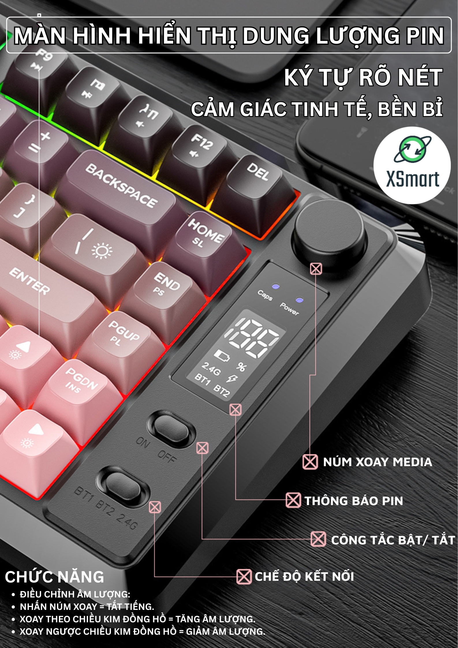 Kết Nối Linh Hoạt: Hỗ trợ Bluetooth 5.0 và USB 2.4G, dễ dàng chuyển đổi giữa các thiết bị.