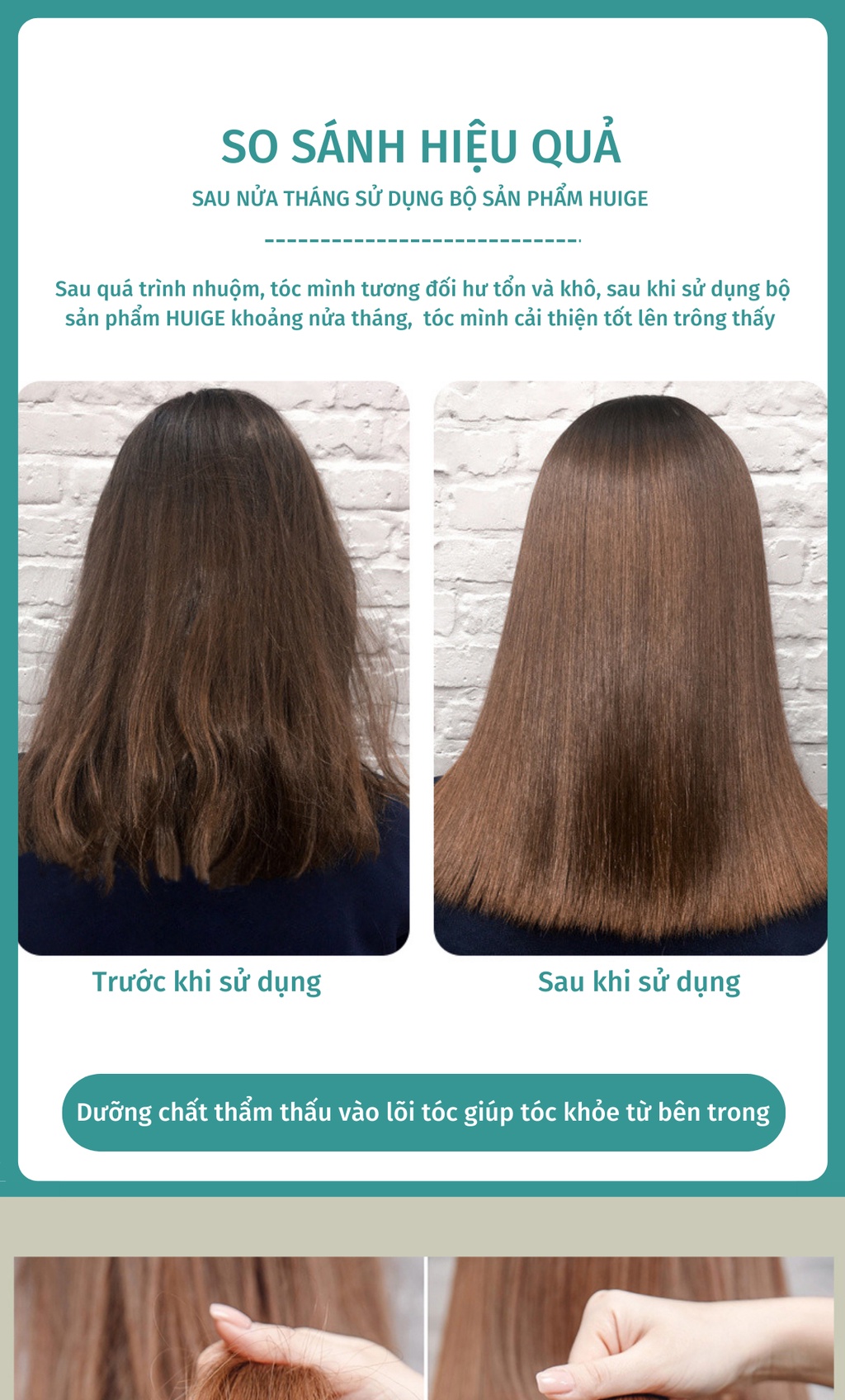 Các cô nàng đã từng sử dụng HUIGE, hổng có ai là không khen nha! Mùi hương thơm ngây ngất cứ thoang thoảng cả ngày, tóc thì suôn mượt và bồng bềnh.