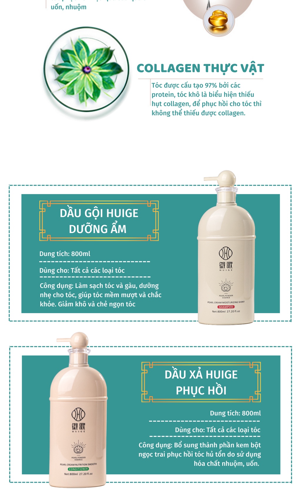 Bộ dầu gội dầu xả HUIGE PEARL CREAM 800ML X2 Phục hồi dưỡng ẩm cho tóc mềm mượt - Cặp gội xả bột ngọc trai GX27