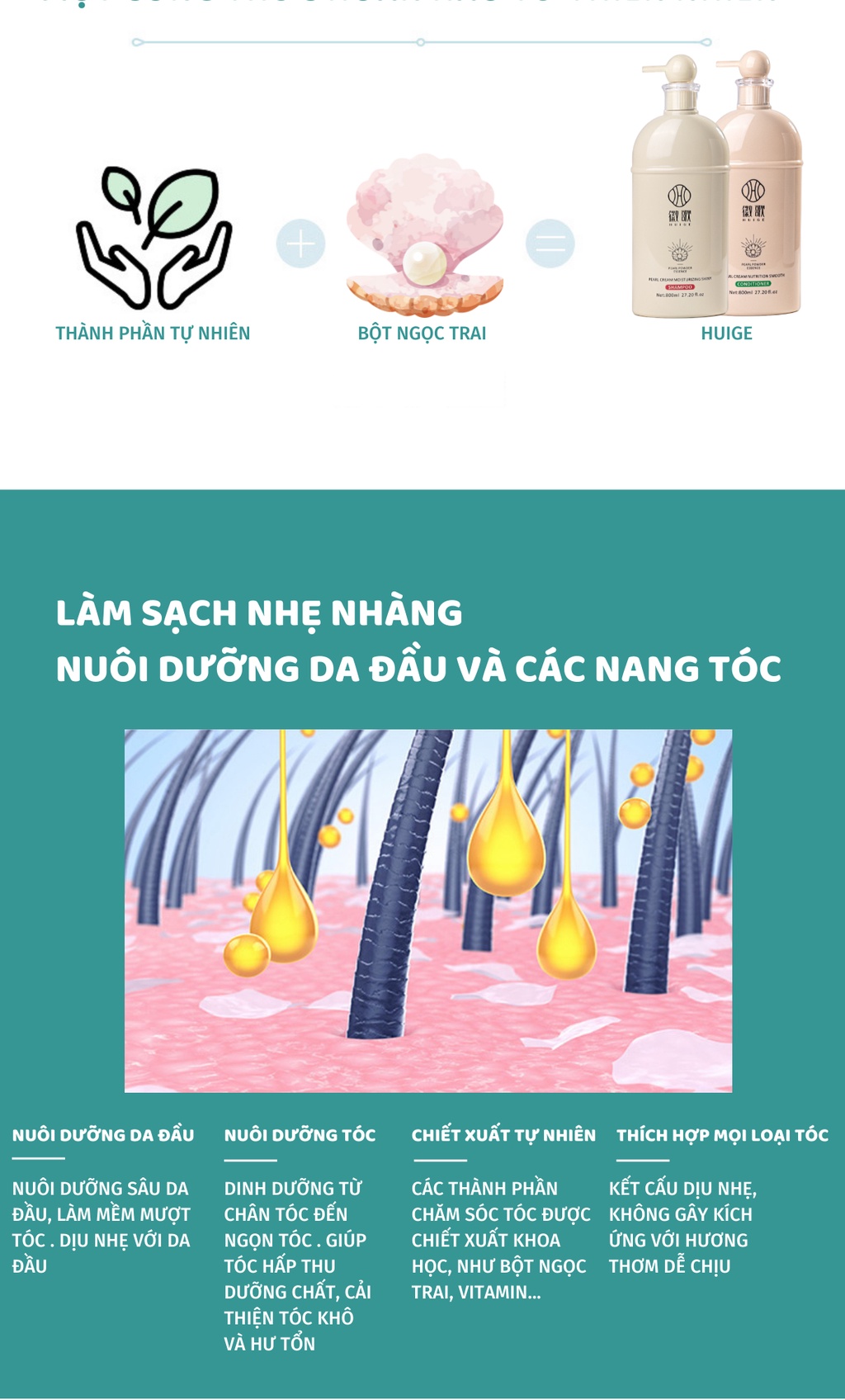 CỰC KỲ THÍCH HỢP KHI KẾT HỢP VỚI KEM Ủ TÓC HUIGE PEARL CREAM - KEM Ủ TÓC BỘT NGỌC TRAI