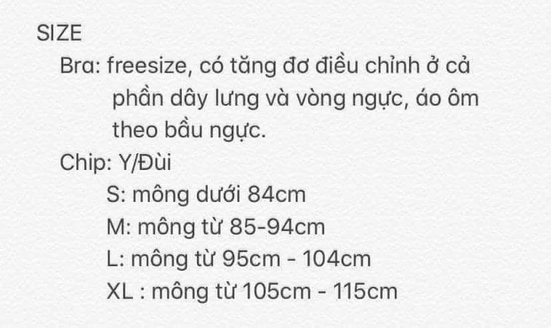 Bra: freesize, có thể điều chỉnh tăng đơ phù hợp với body của bạn.