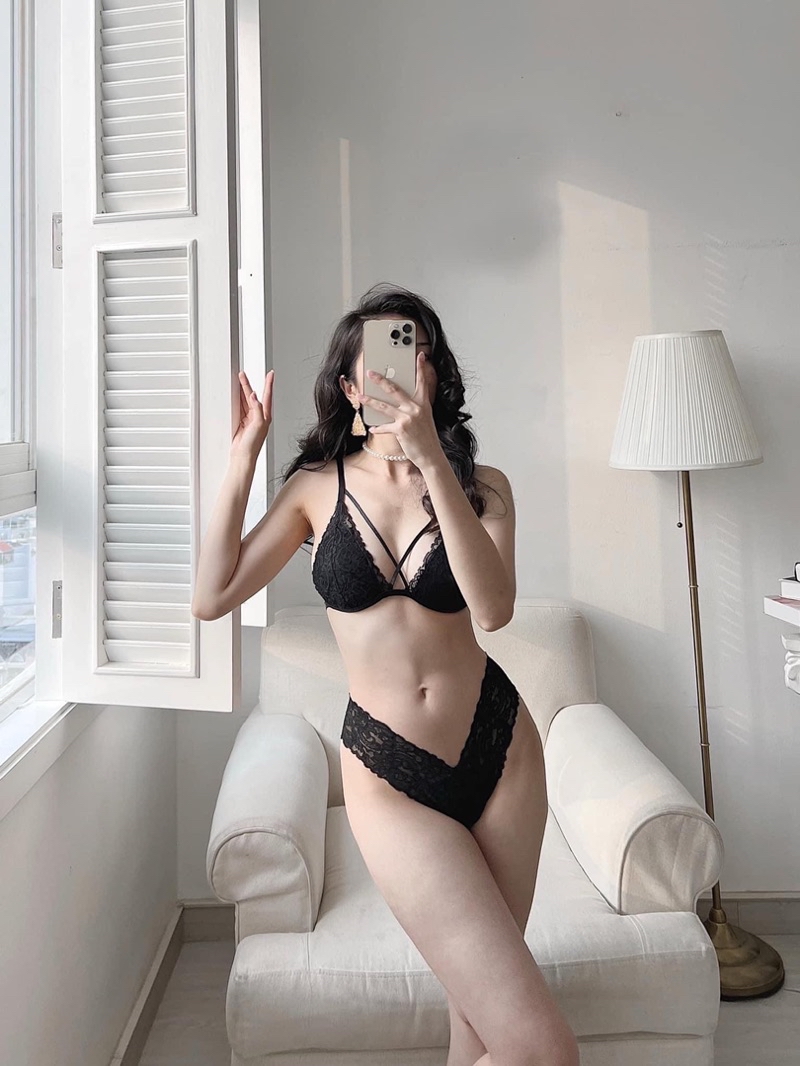 Bộ đồ lót nữ , nội y nữ ren sexy thiết kế quần chữ y, cổ chéo GIN Lingerie