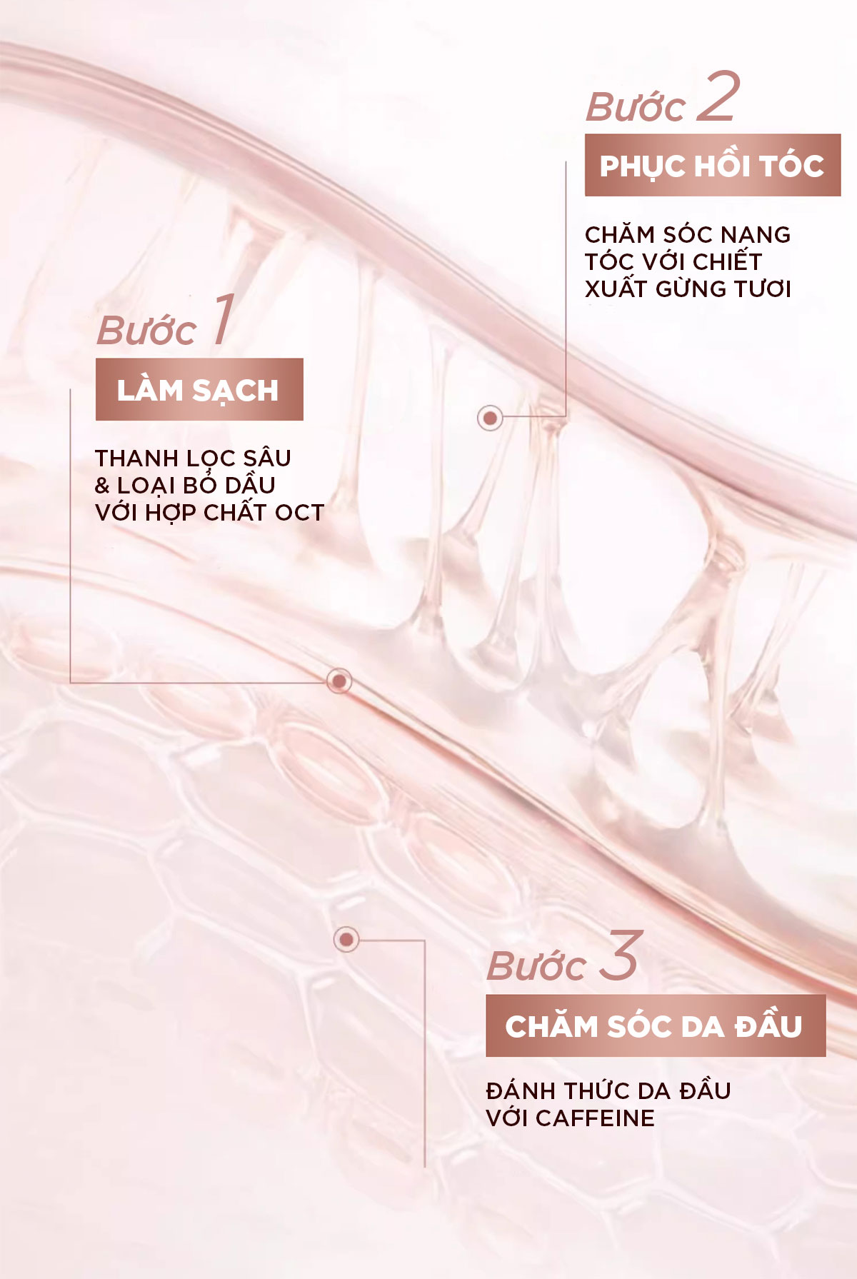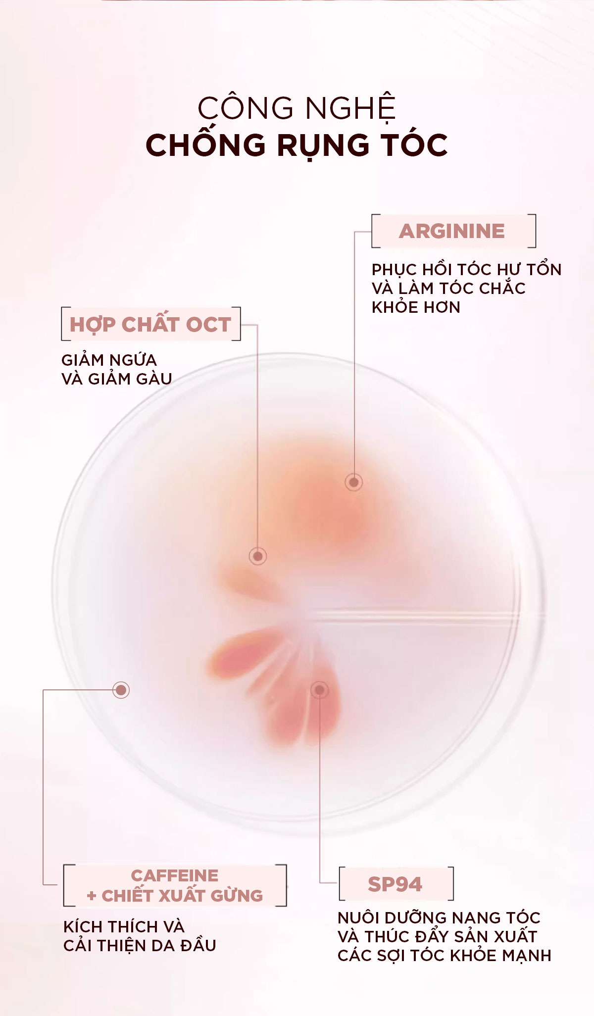 - CAFFEINE + CHIẾT XUẤT GỪNG: Kích thích và cải thiện da đầu