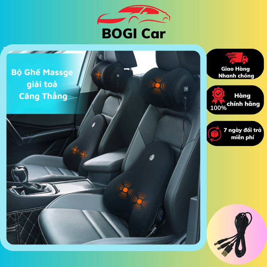 Bộ Tựa Lưng Và Gối Đầu Ô Tô Tích Hợp Massage 6 Chế Độ,Cao Su Non.Giảm Đau Mỏi Cổ Vai Gáy Cột Sống Thư Giãn Lái Xe - BOGI