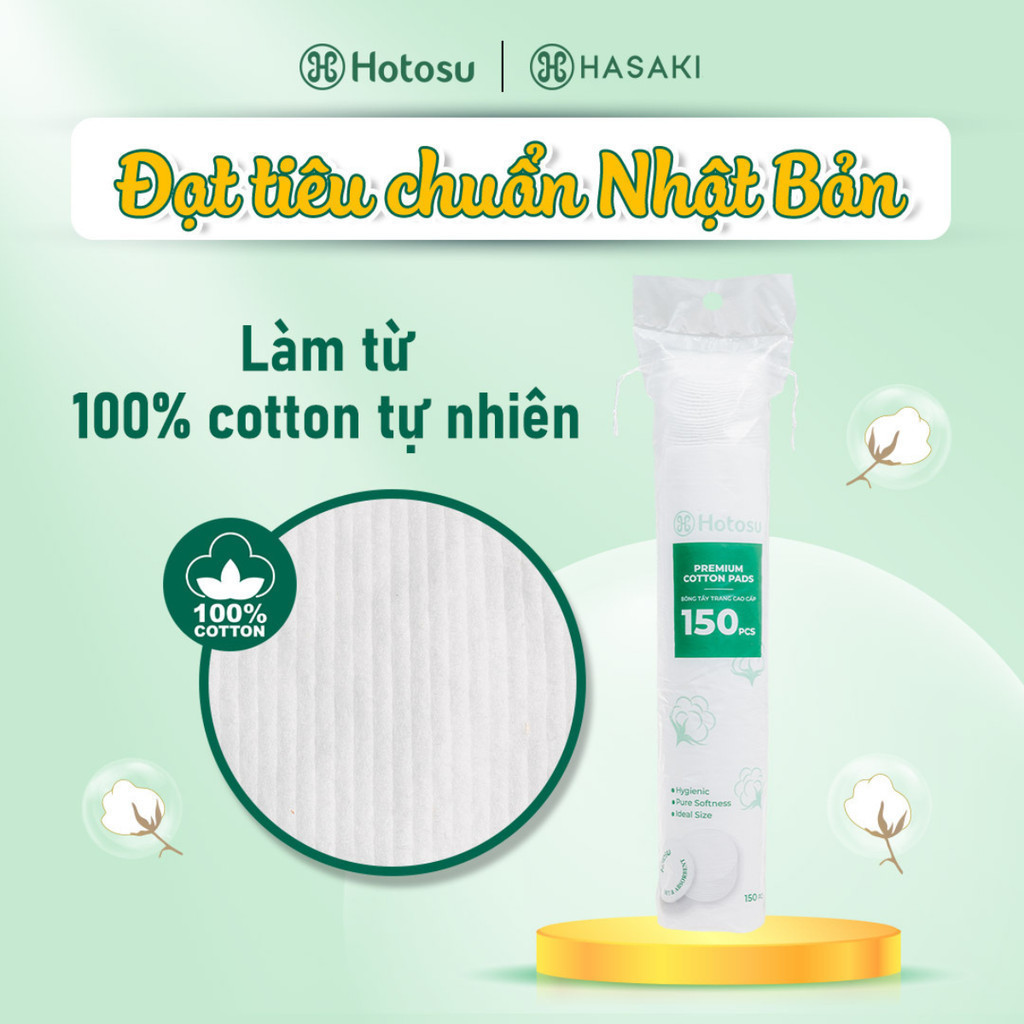 [DAILY] [100% COTTON] Bông Tẩy Trang Hotosu Cao Cấp Túi 150 Miếng/Hộp 80 Miếng Hasaki Sản Phẩm Chính Hãng