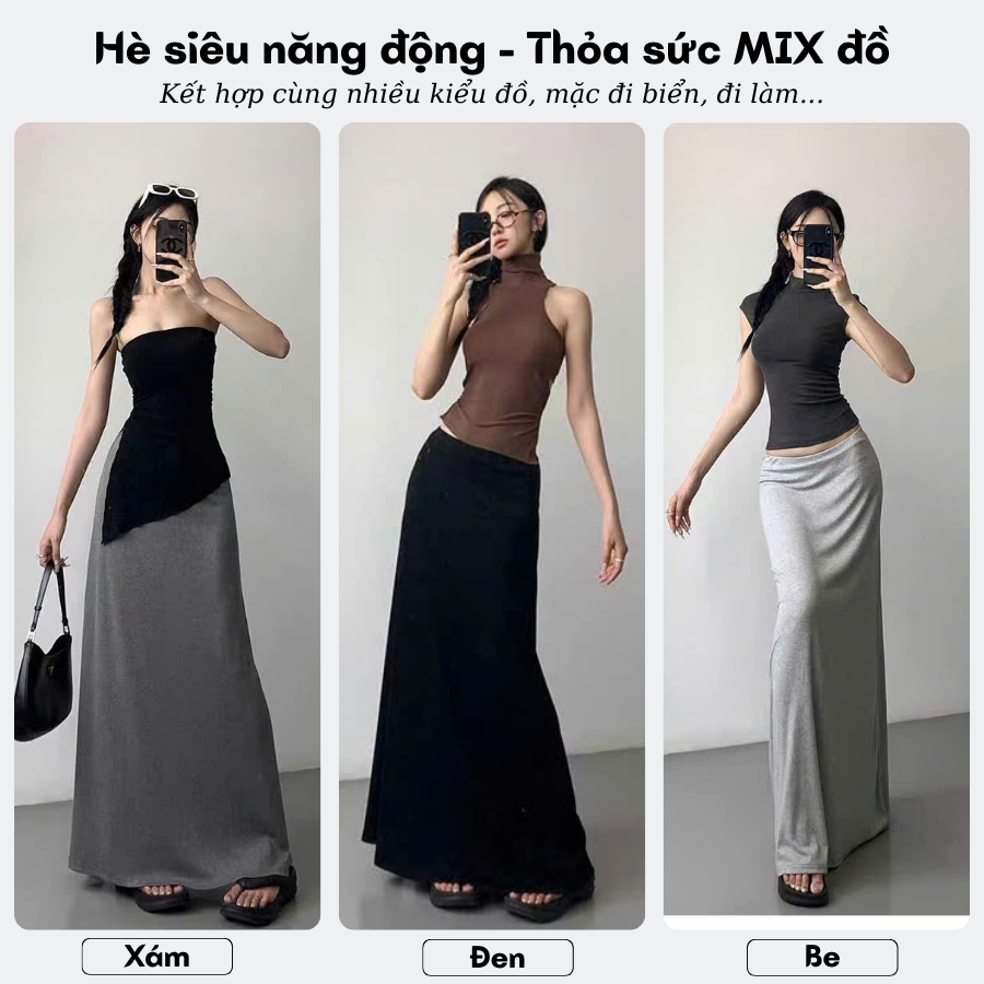 - Sản phẩm: Chân váy nữ dáng dài chữ A Luna , chân váy dáng dài suông chất thun tăm mùa hè siêu mỏng mát mặc đi học, đi chơi
