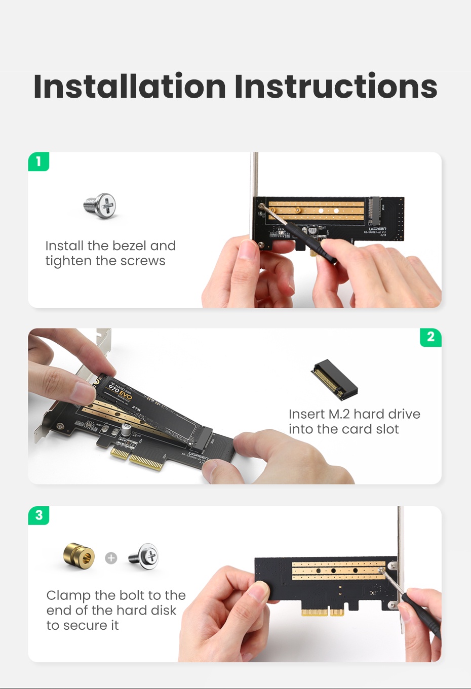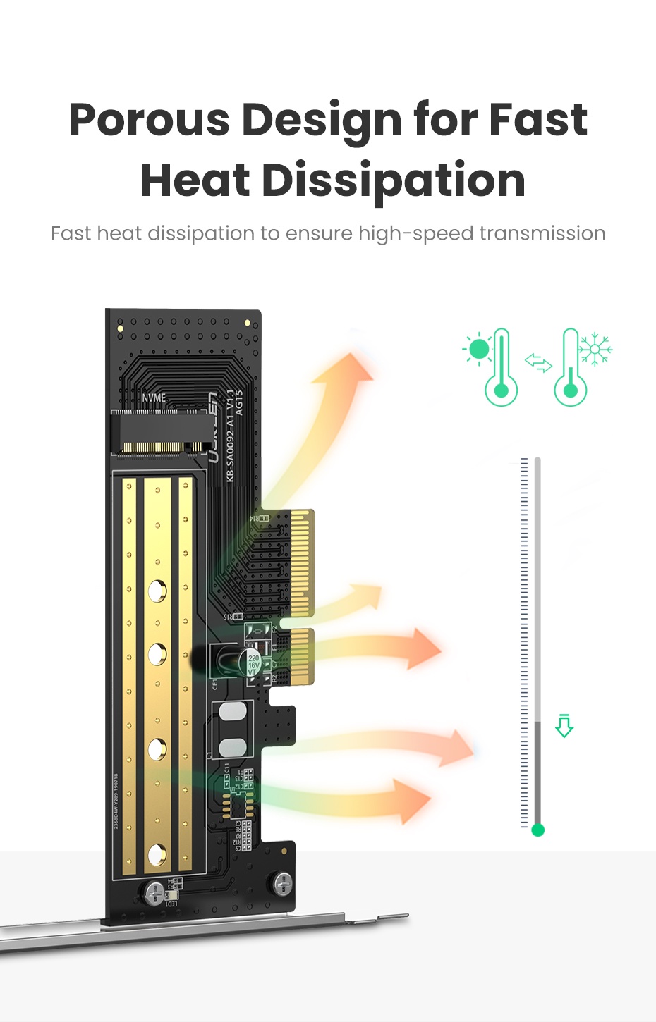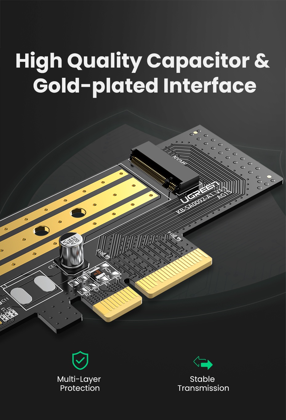 Bộ chuyển đổi Ugreen PCIE sang M2 NVMe M.2 PCI Express Bộ chuyển đổi 32Gbps Thẻ PCI-E x4 / 8 / 16 M & B Key SSD Thẻ mở rộng máy tính