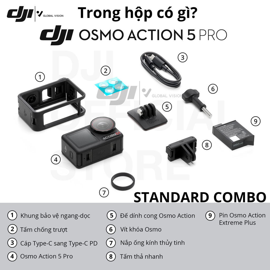 Camera hành động DJI Osmo Action 5 Pro máy quay hành trình 4K 120fps, chế độ màu HLG, quay đêm rõ nét (DJI OA 5 Pro)