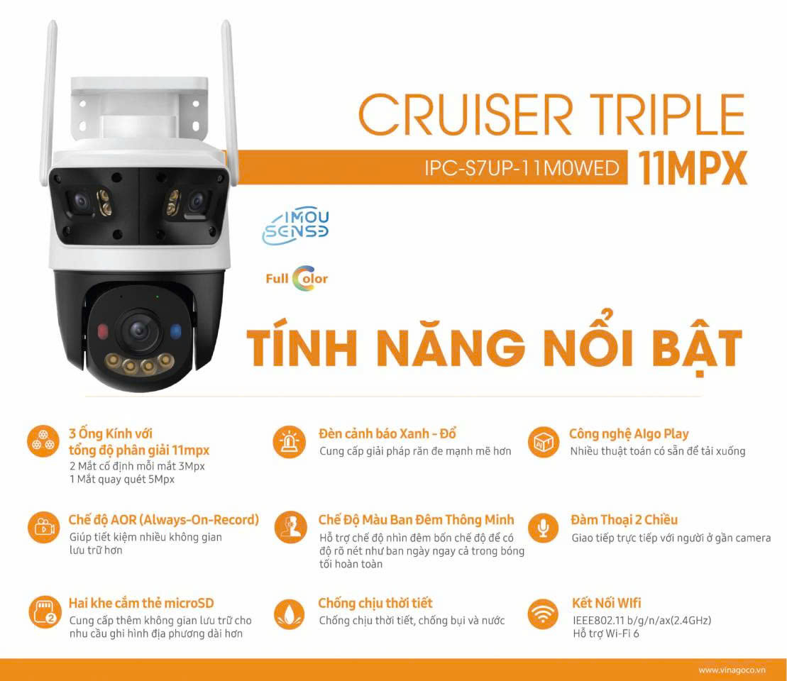 TÍNH NĂNG IMOU CRUISER TRIPLE 11MP - IPC-S7UP-11M0WED