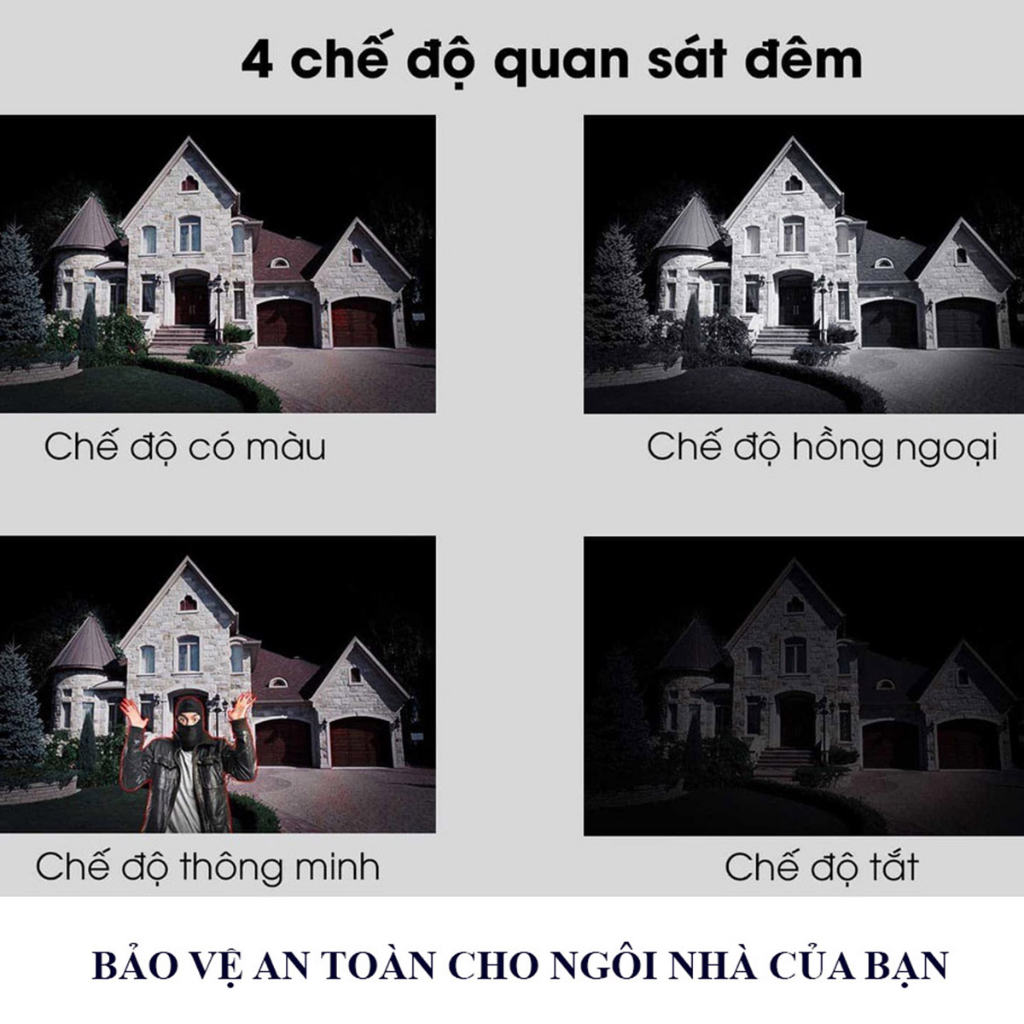 • Chế độ ban đêm thông minh với 4 chế độ sáng: Tự động, Full Color, Hồng ngoại và tắt.