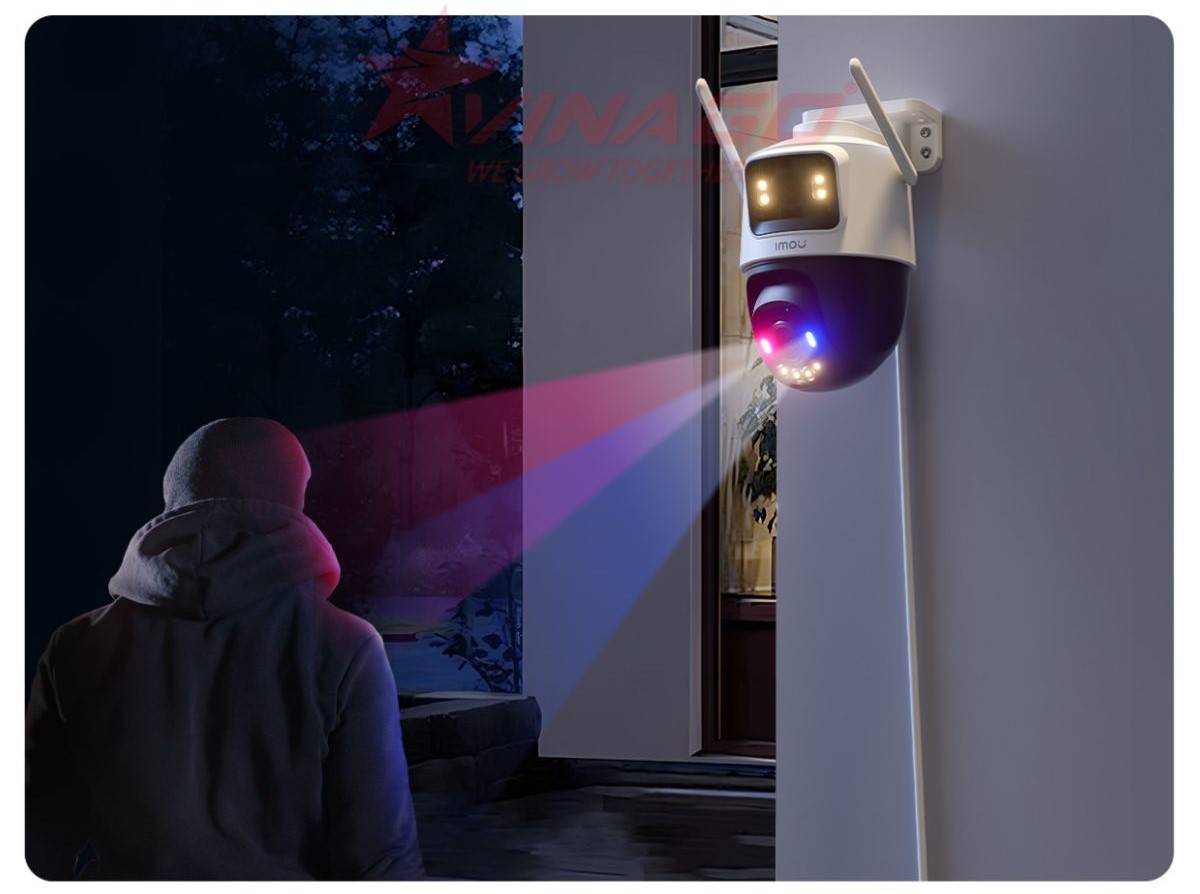 Báo động chủ động: Còi 110dB và đèn chớp xanh đỏ cảnh báo hiệu quả.